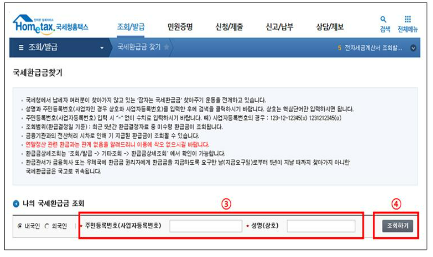 - 주민번호 입력 후 미환급금 조회하기