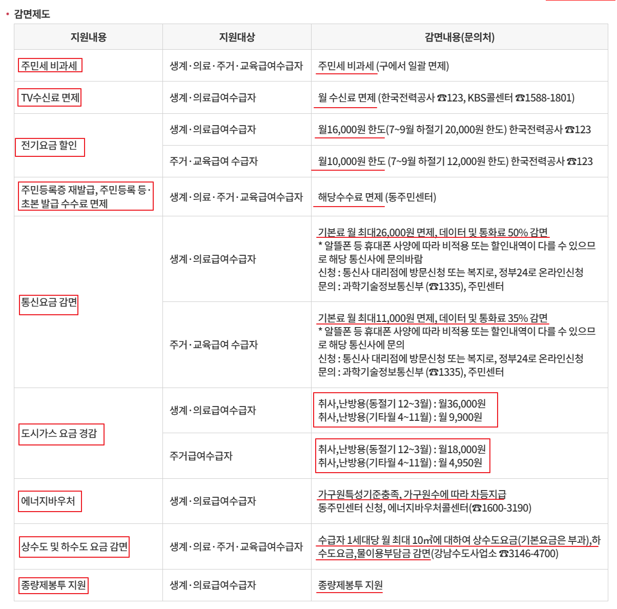 | 핵심 혜택 | 생계·의료·주거·교육급여 등 |