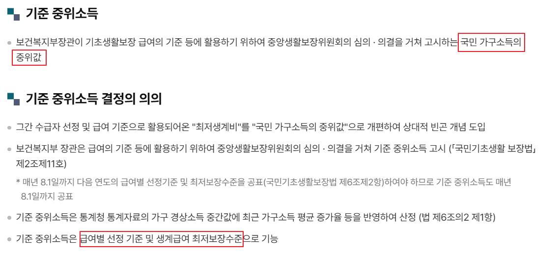 | 기준중위소득 뜻 | 전체 가구 소득의 중간값 |
