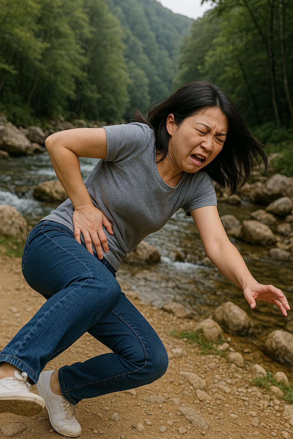 아무 생각없이 계곡쪽에서 발좀 추기려다 그만 미끄러졌어요.