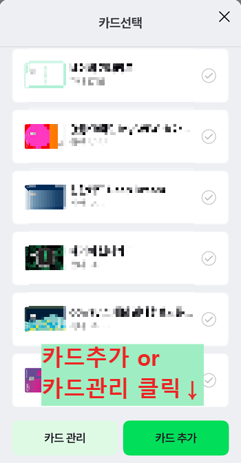 - ‘간편결제 수단’ → ‘카드 관리’ 선택