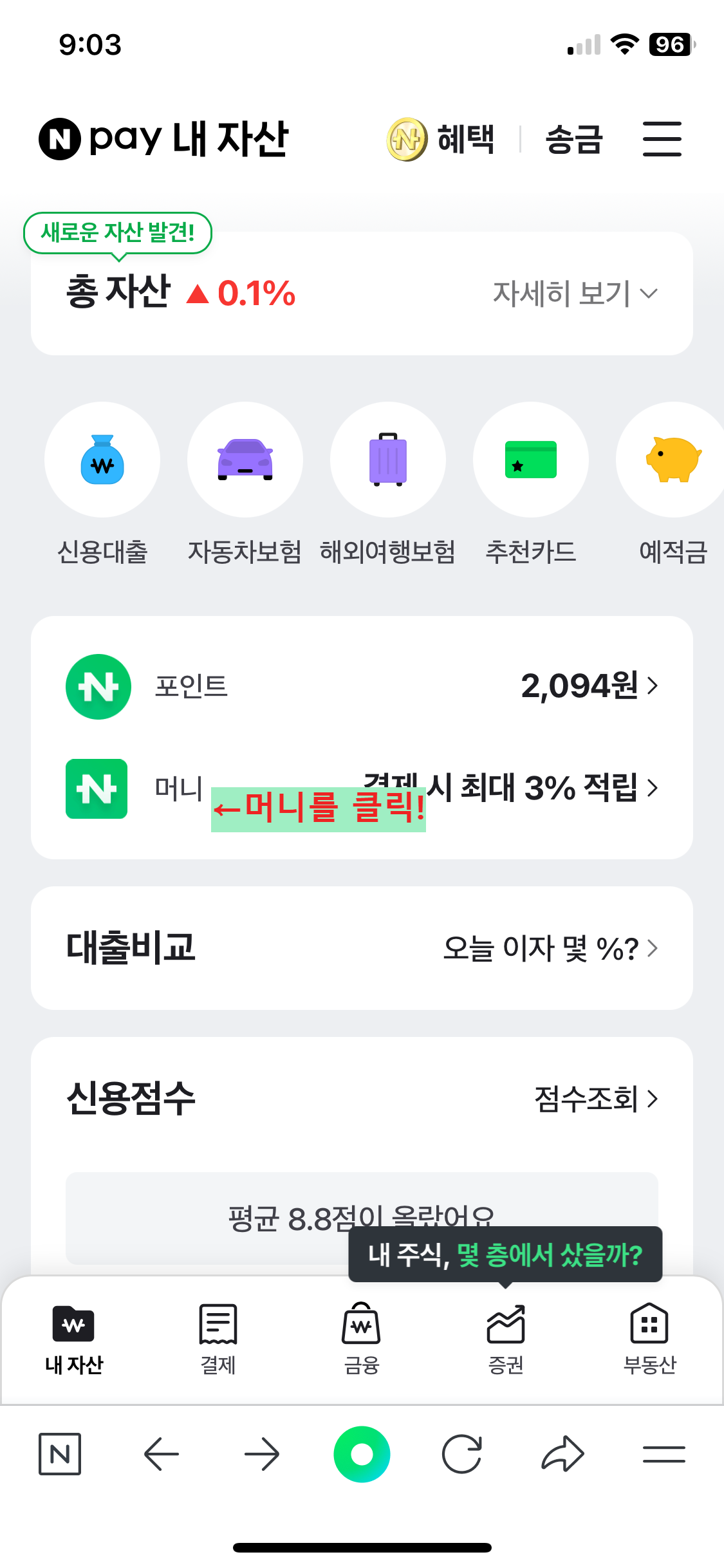 1. 네이버페이 ‘포인트’ 탭 클릭
