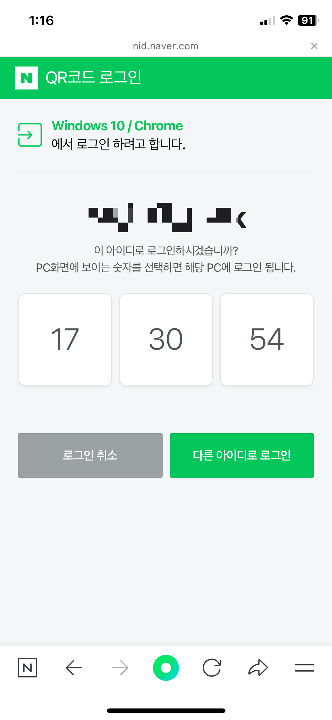 어쩌다가 한 번 모바일에서 비번 변경하면