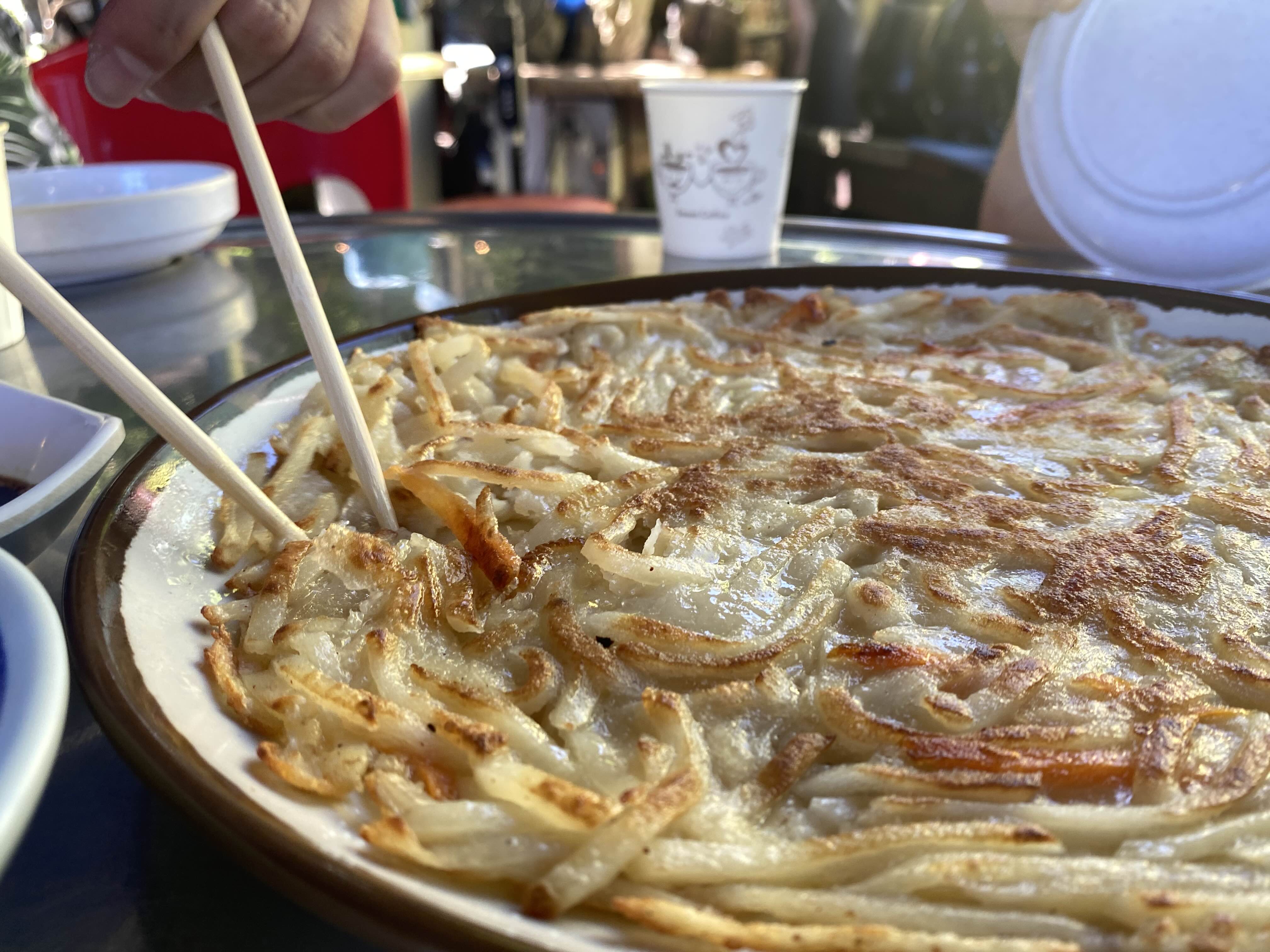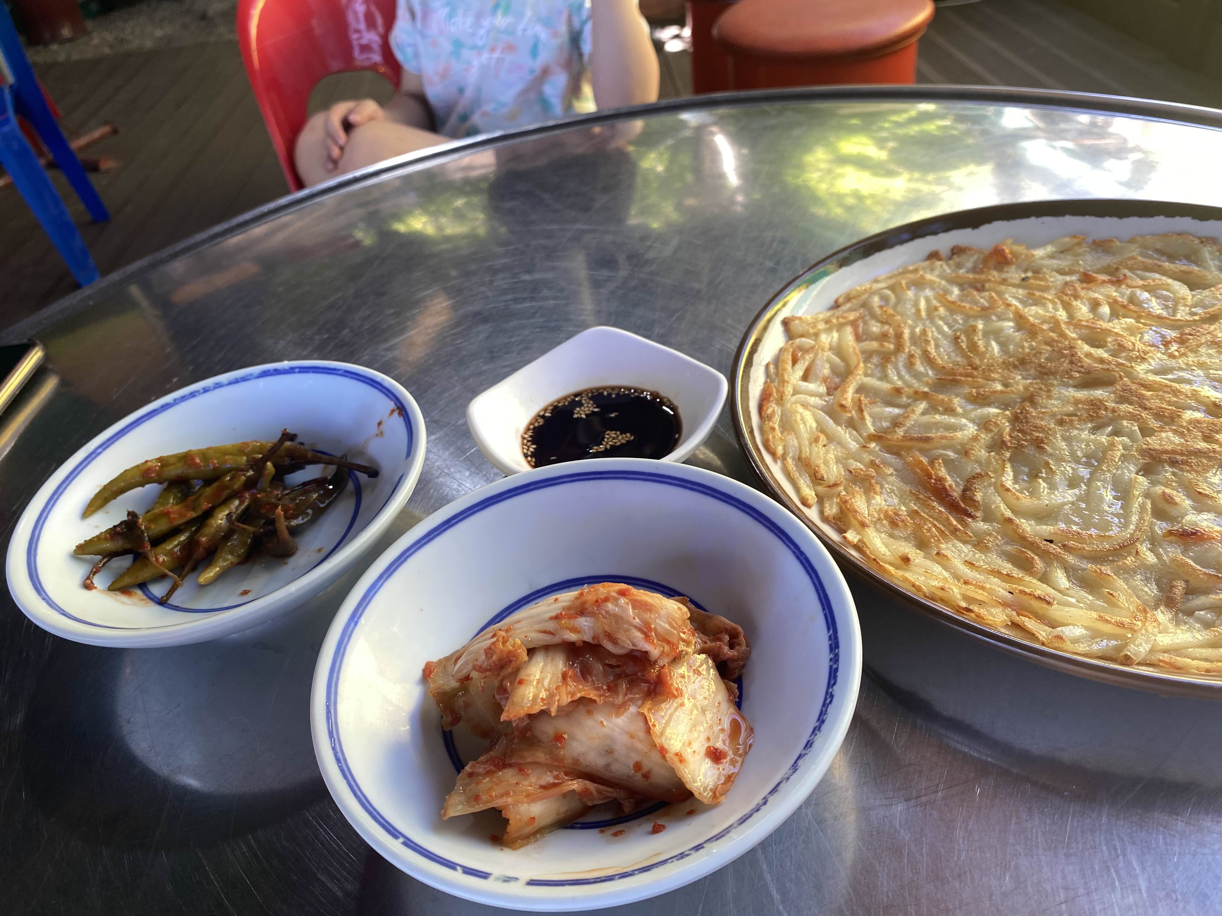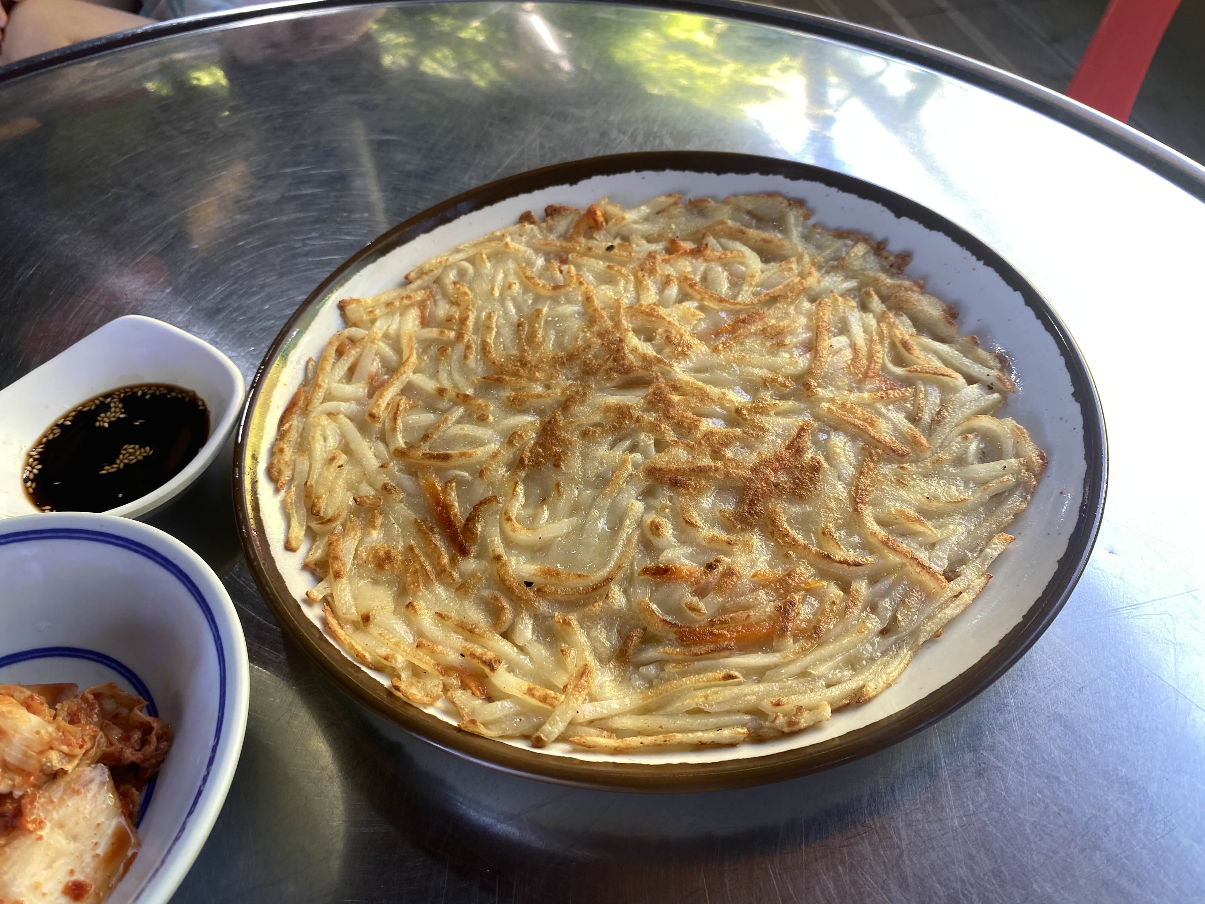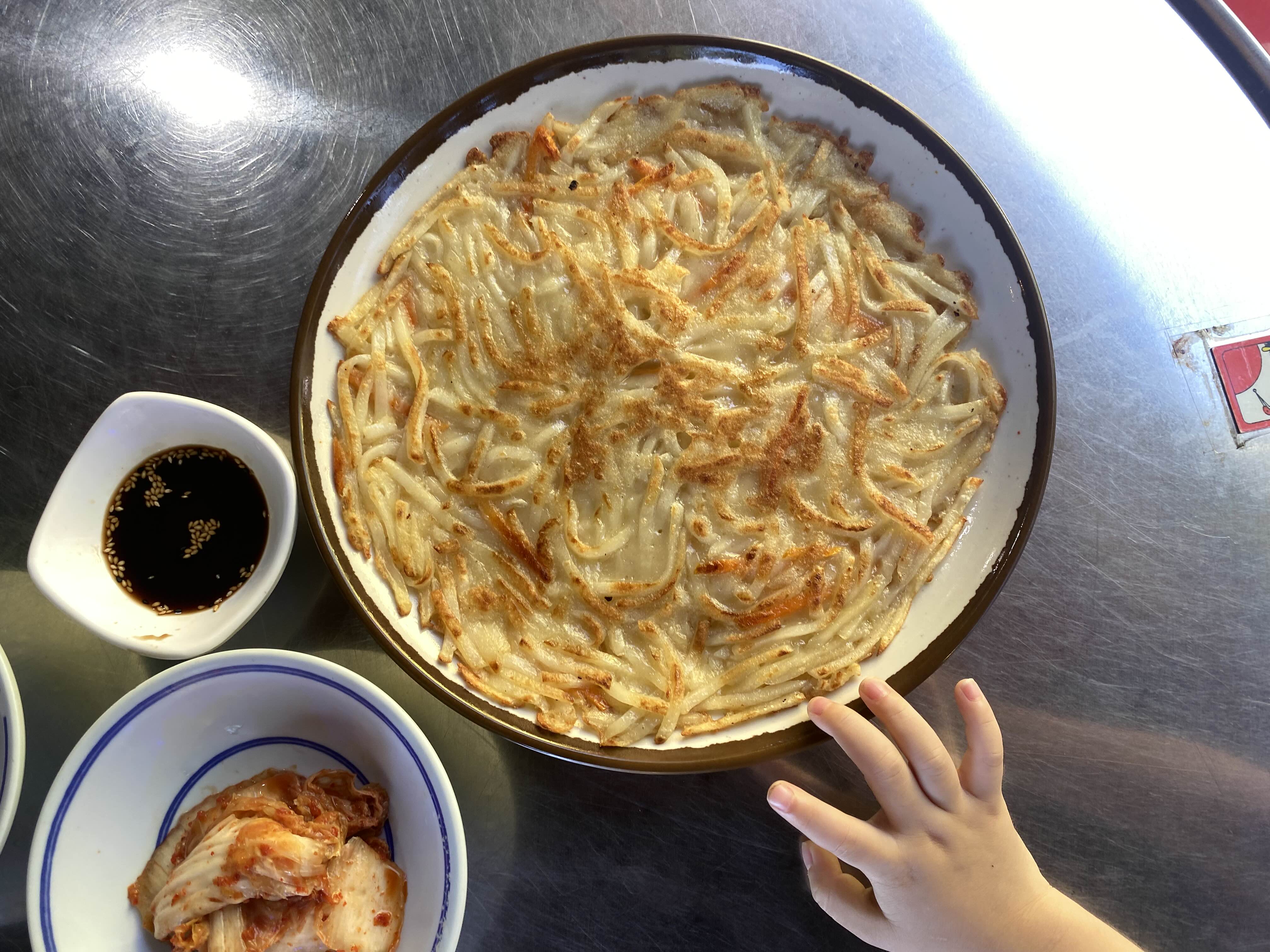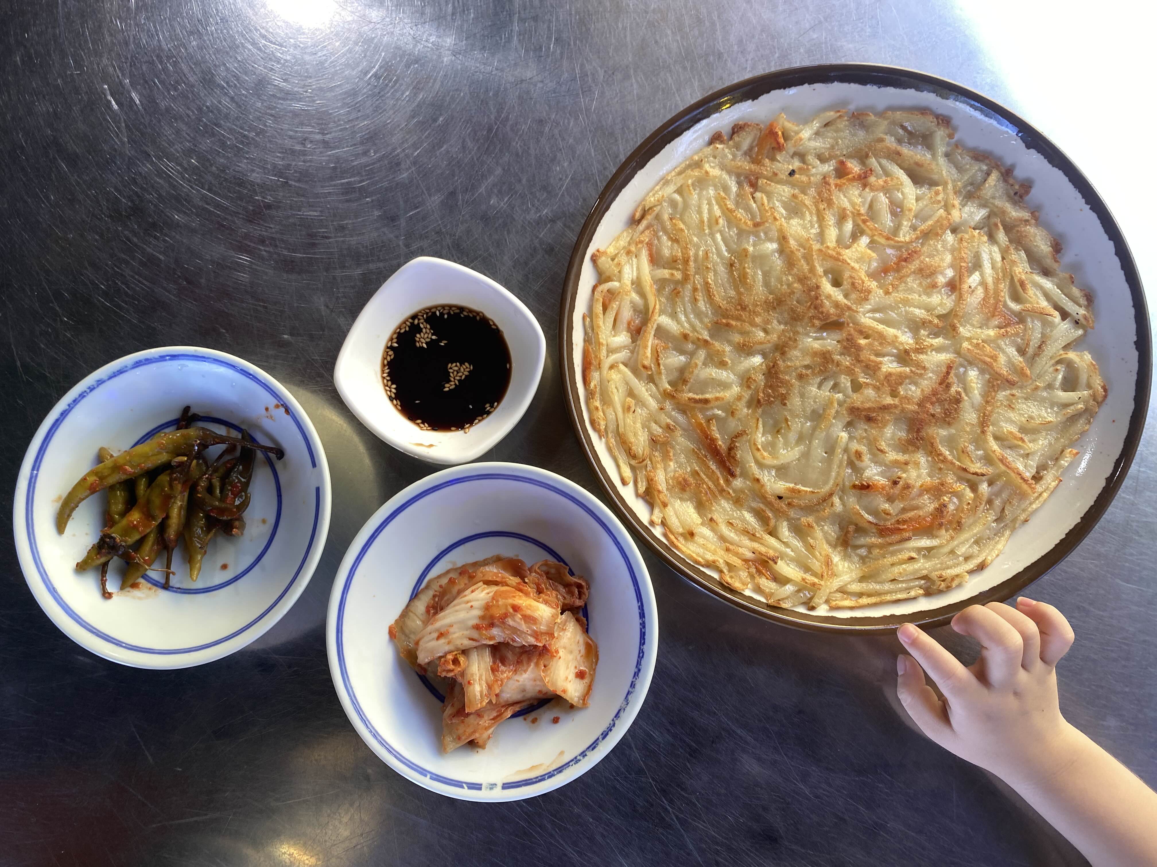 감자를 채썰어서 부쳤는데요. 간장 딱히 안찍어도 슴슴하니