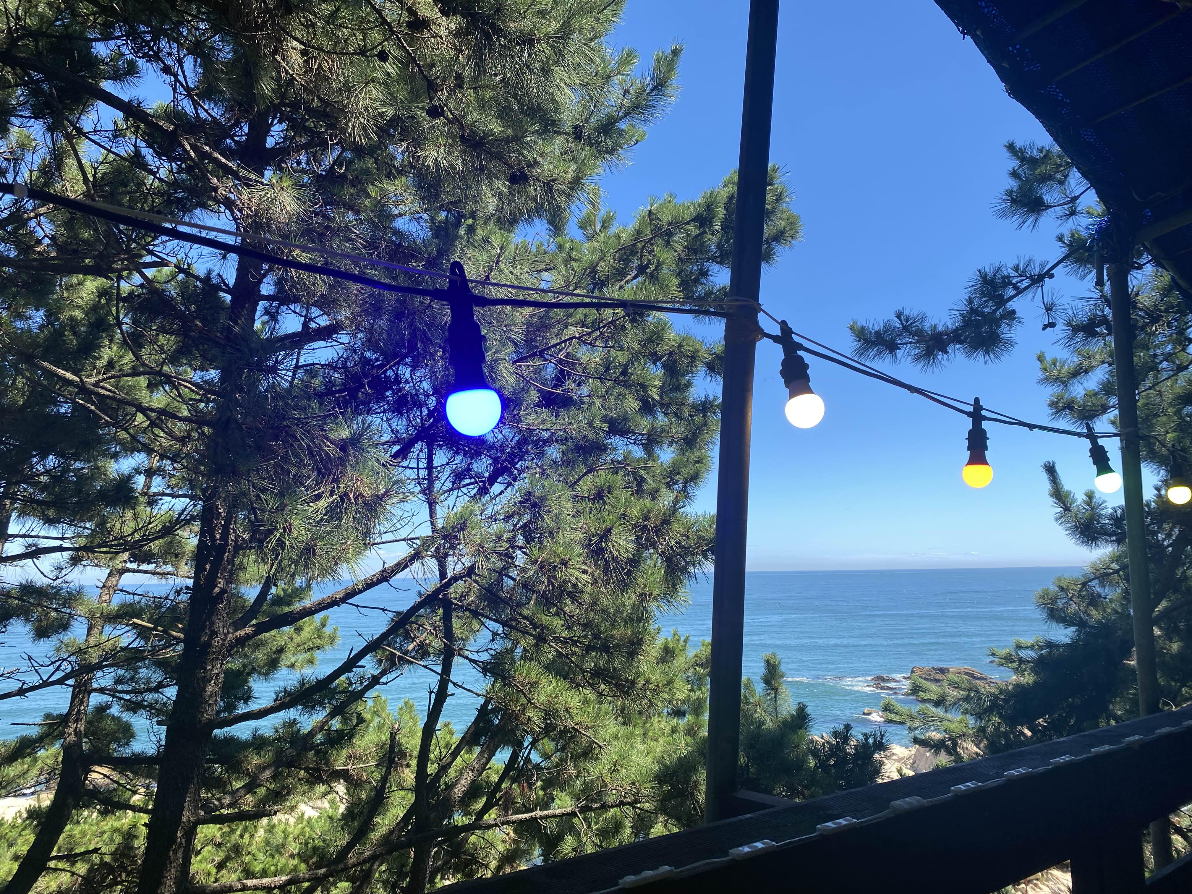 저희는 바다풍경을 즐기기 위해 외부에 착석했어요.