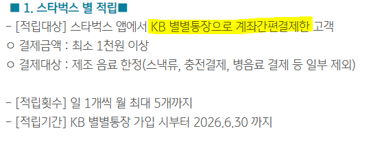 🎁 KB별별통장 쿠폰 지급 구조(스타벅스 앱에서 계좌간편결제시 이벤트 혜택을 받을 수 있는 통장)