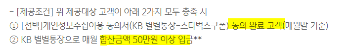 - 입금 조건은 타기관 송금만 인정, 국민은행 간 이체는 인정 안 됨