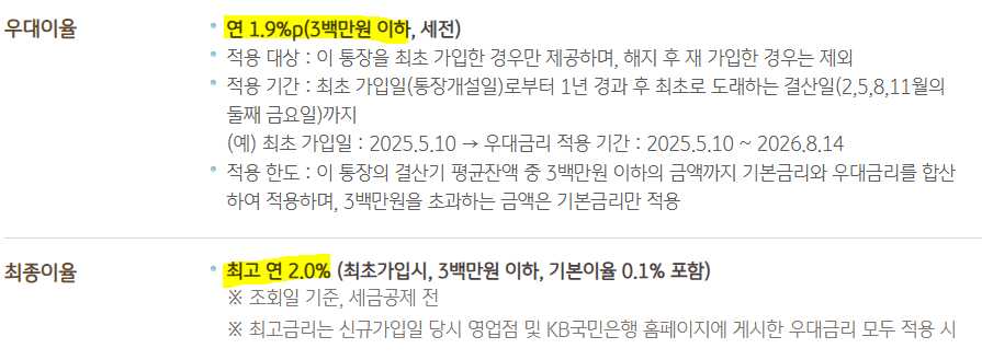 | 📲 가입방법 | KB스타뱅킹앱에서 비대면 개설 |
