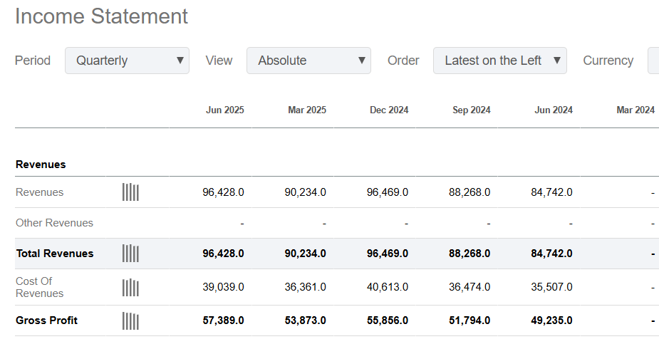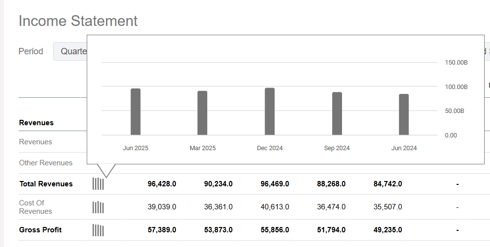 2. Financials 을 클릭해 들어가 연매출 및 이익을 확인 할 수 있습니다.