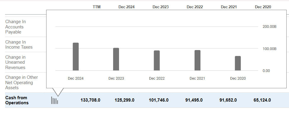 3. 추가로 cash flow를 클릭하여(Net income) 순이익도 확인합니다.