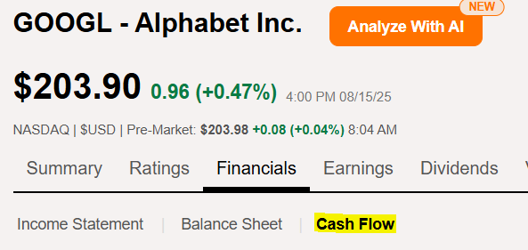 예를들어 구글의 재무가 얼마나 탄탄한지 확인해 보겠습니다.