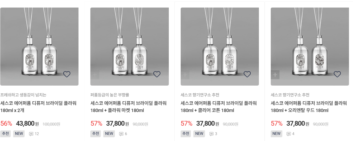 세스코 에어퍼퓸 디퓨저는 총 4가지 향으로 구성되어 있습니다
