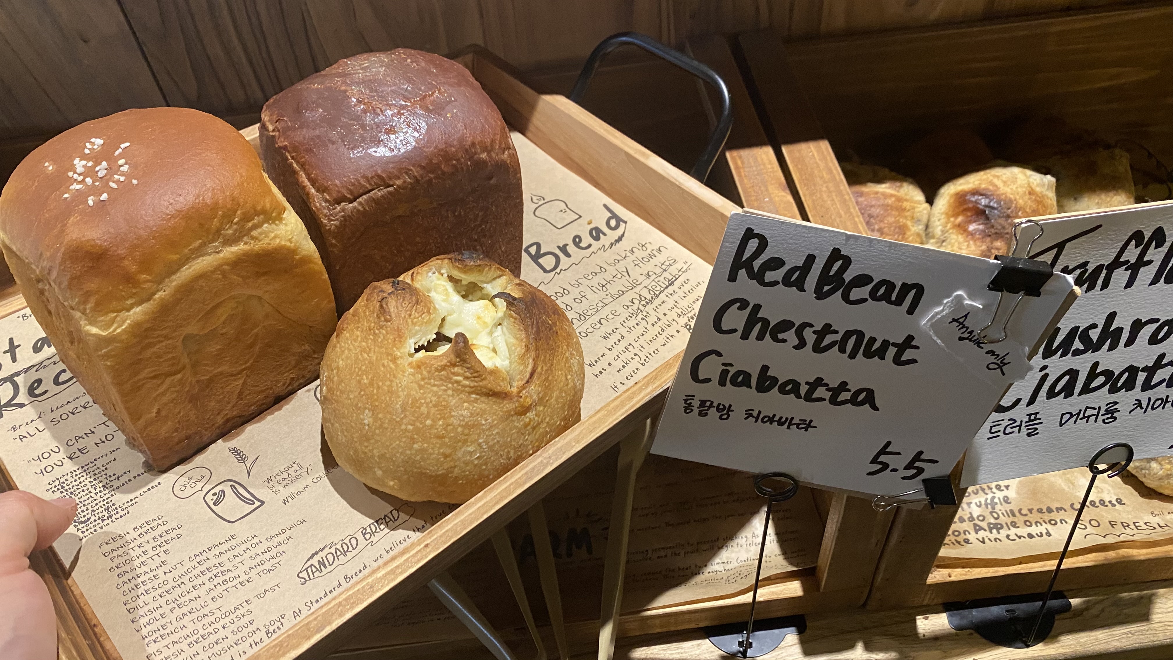 저는 안국점에만 있다는 통팥밤 치아파타와 초코식빵과 솔티드 버터식빵이렇게