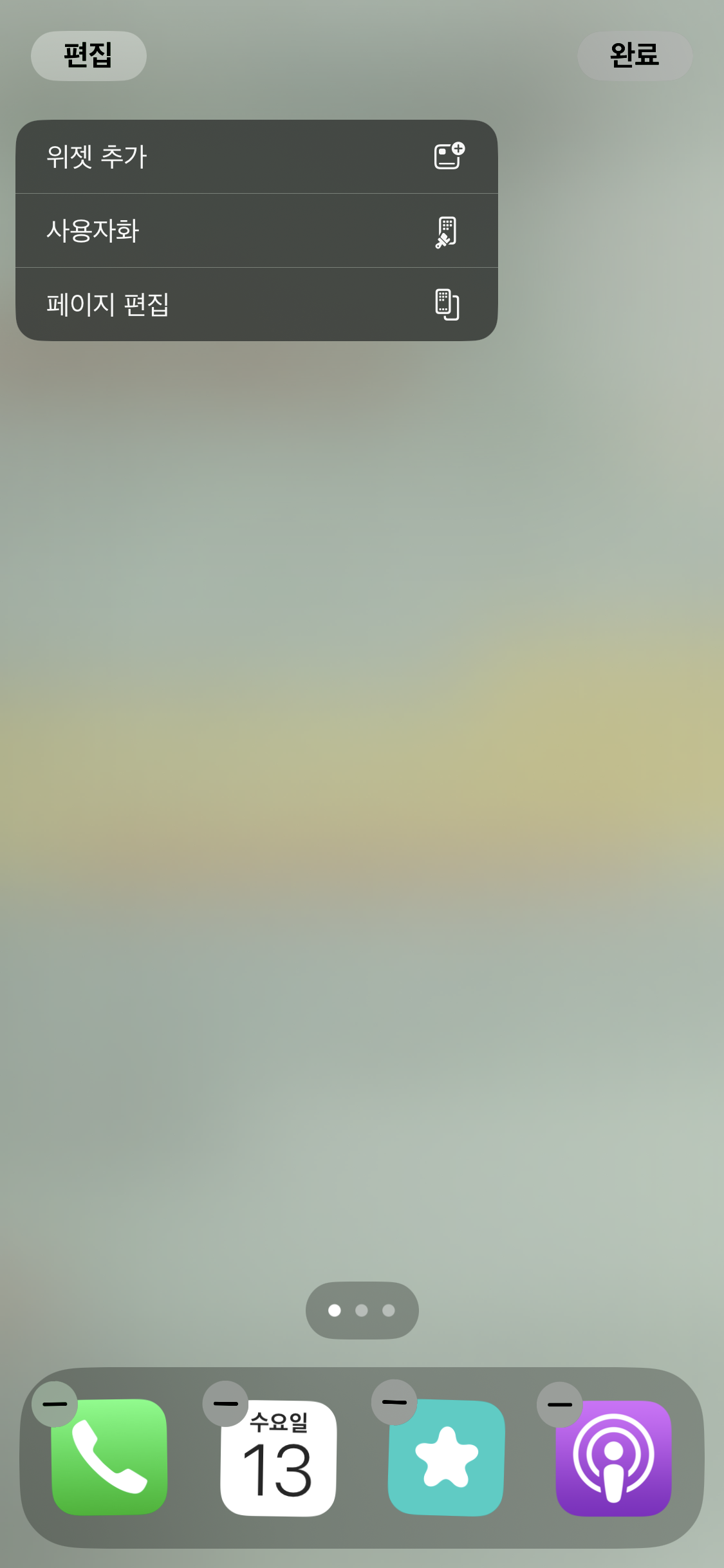 1. 위젯은 바탕화면에 와서 화면을 꾸욱 눌러요.