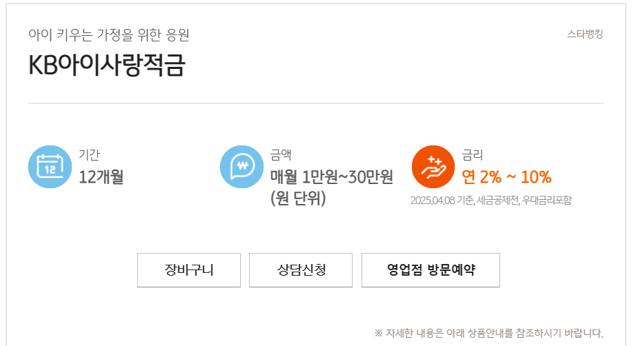 1. 국민은행(KB) - 연 10% 금리 ‘아이사랑적금’
