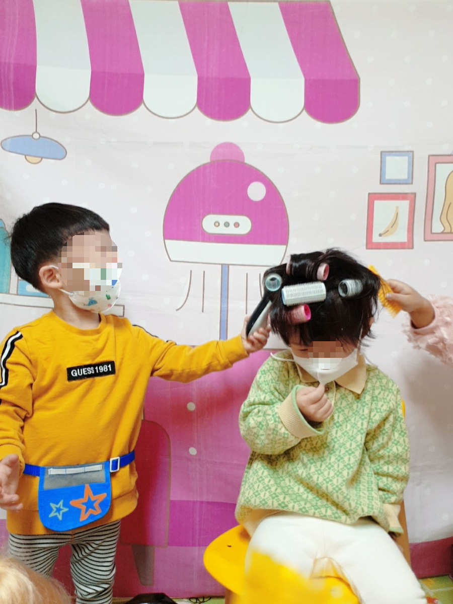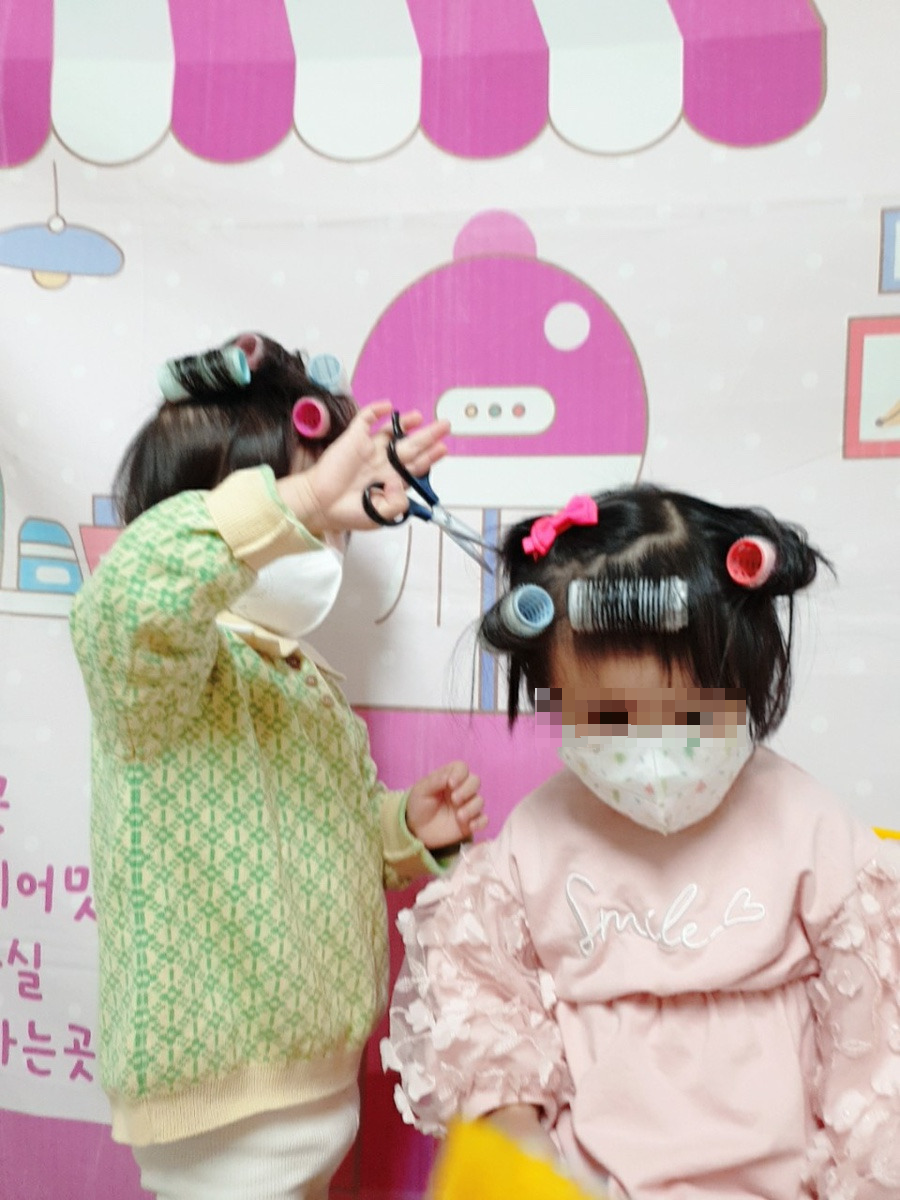 알고 보니 아이들이 직접 참여하는 미용실 놀이였어요! ✂️
