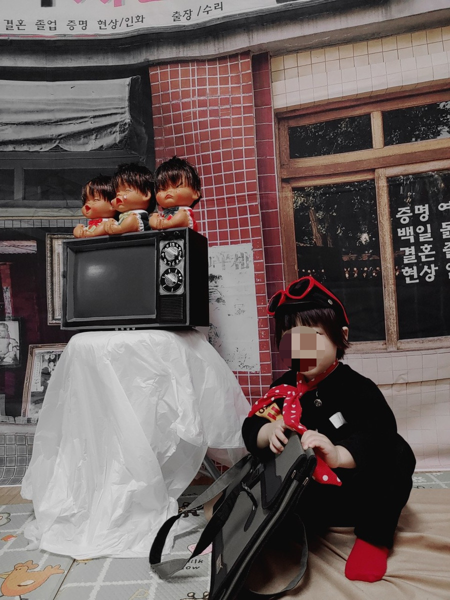 뒤에 걸린 사진관 현수막까지 완벽한 분위기…
