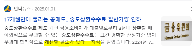 2025년부터 중도상환수수료 제도가 새롭게 바뀝니다.