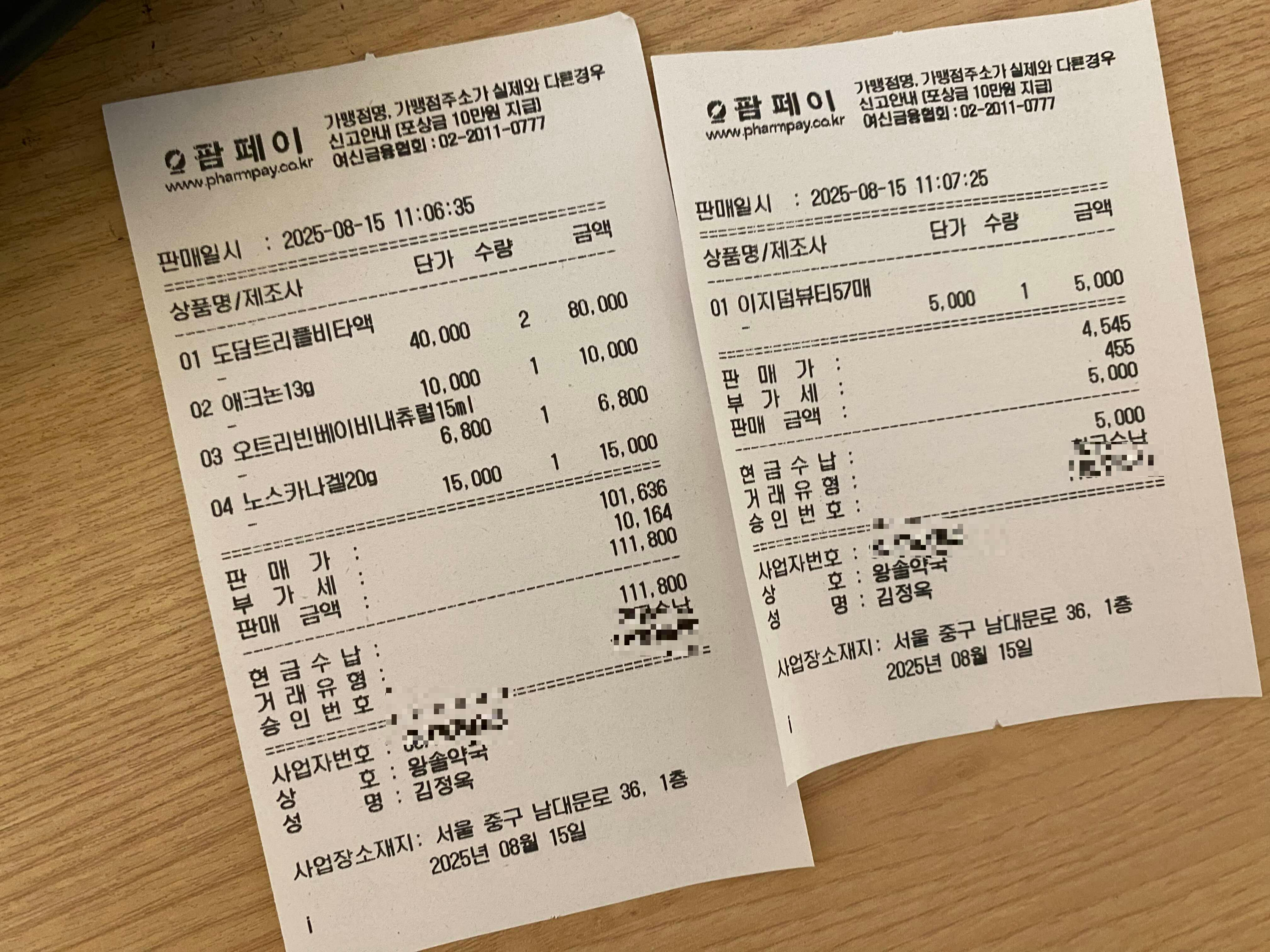 일단 위 영수증 보시면