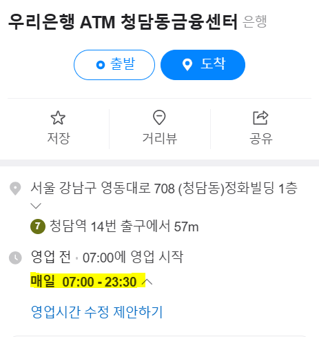 - 일부 심야 ATM: 밤 11시 30분까지 운영