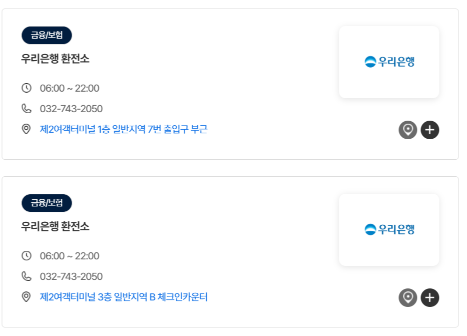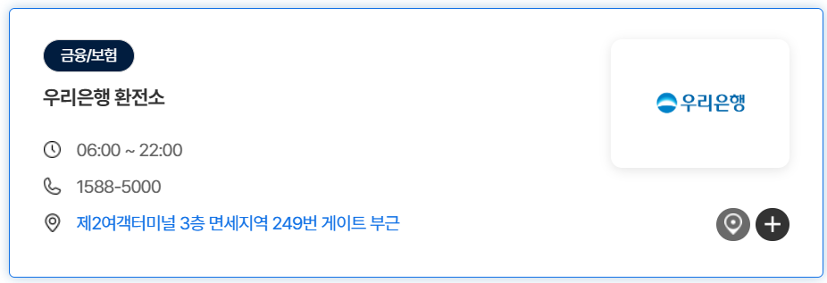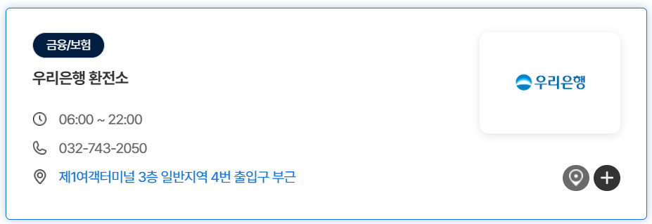 ✔ 대표적인 우리은행 공항 환전 지점 운영 정보
