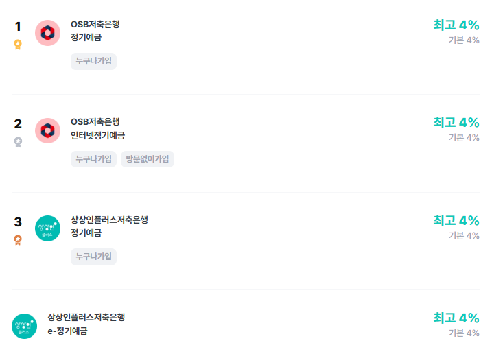 - 다양한 상품: 각 저축은행에서 다양한 기간과 조건의 정기예금 상품을 제공하여 선택의 폭이 넓습니다.