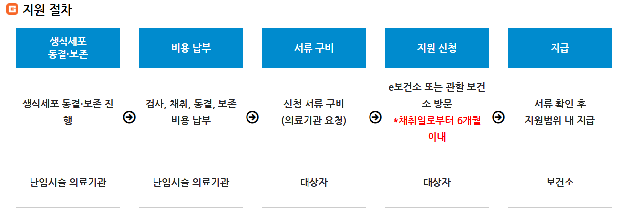 - 생식세포 채취일로부터 6개월 이내 신청해야 하며,