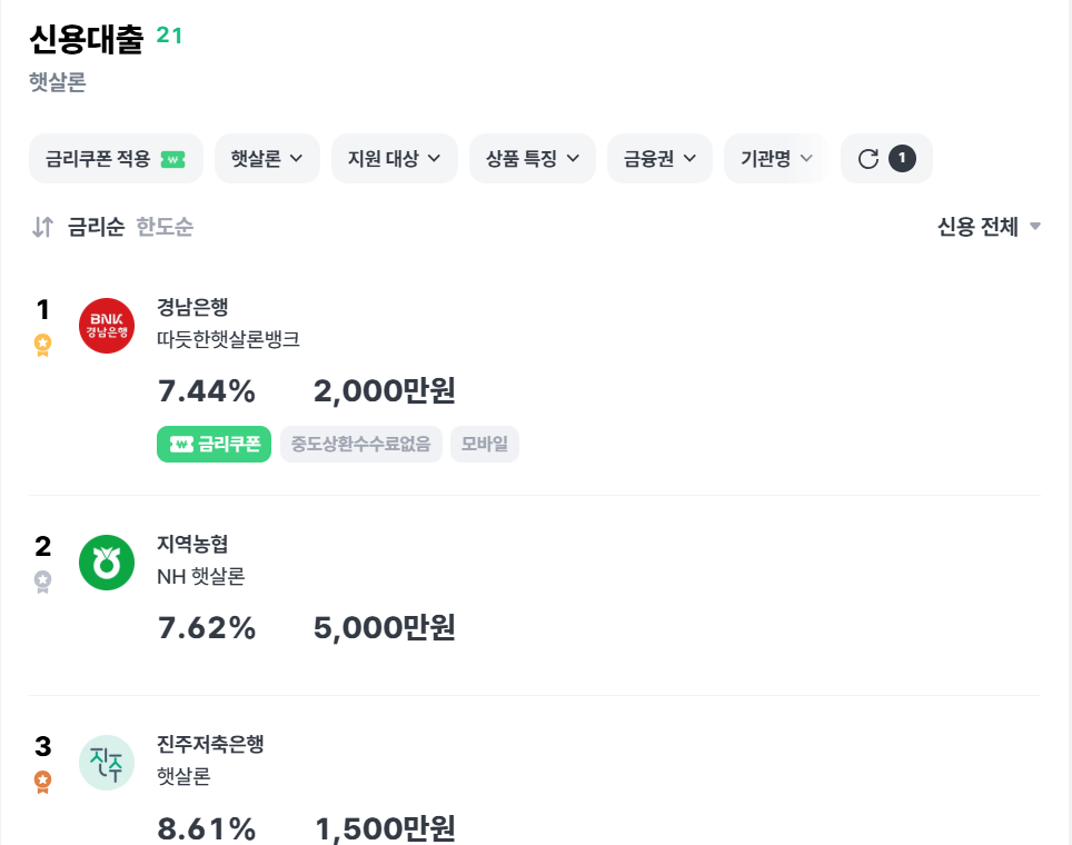 신입이나 소득 낮은 분들은 정부지원 서민대출(햇살론, 새희망홀씨 등)도 고려!