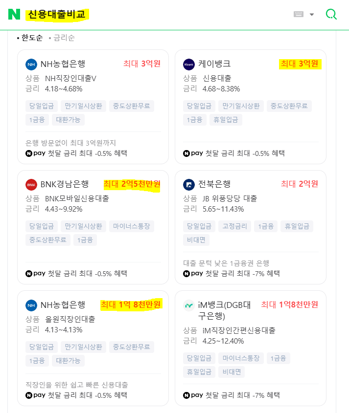 → 모바일 대출앱 or 네이버페이 대출 비교 서비스 활용