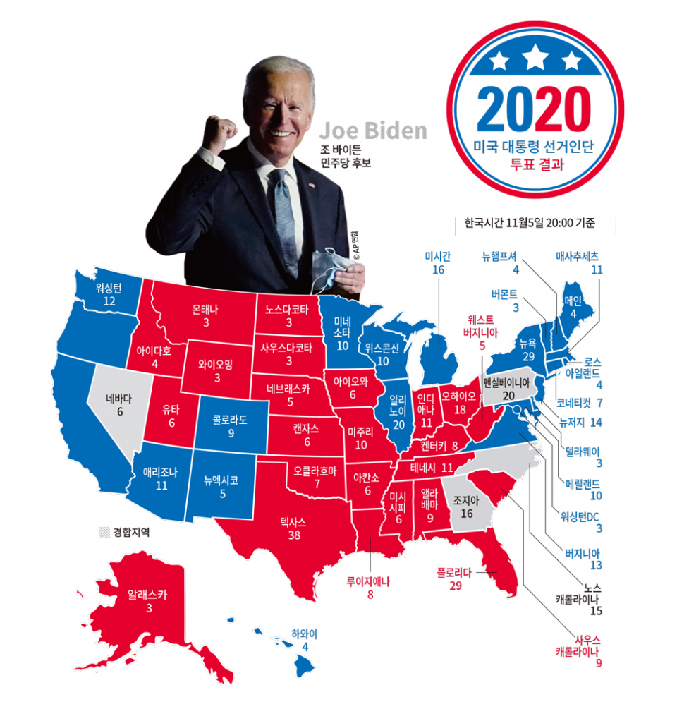 - 현재: 미국과 동일하게 보수 = 레드, 진보 = 블루