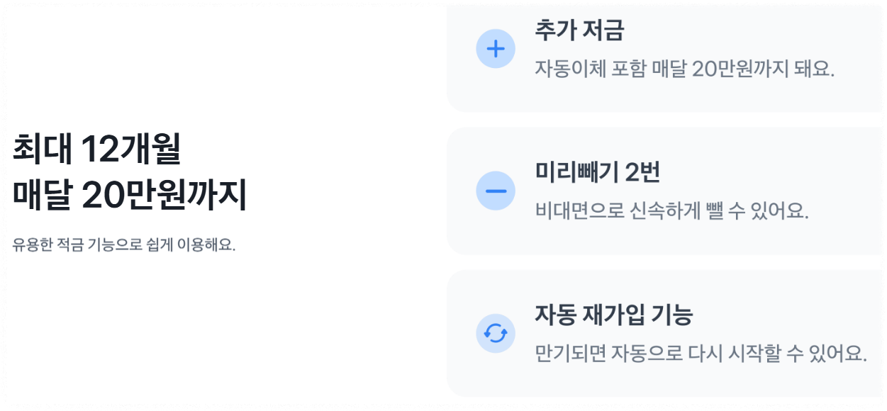 - 월 저축 한도가 낮아 큰 자금 마련엔 한계