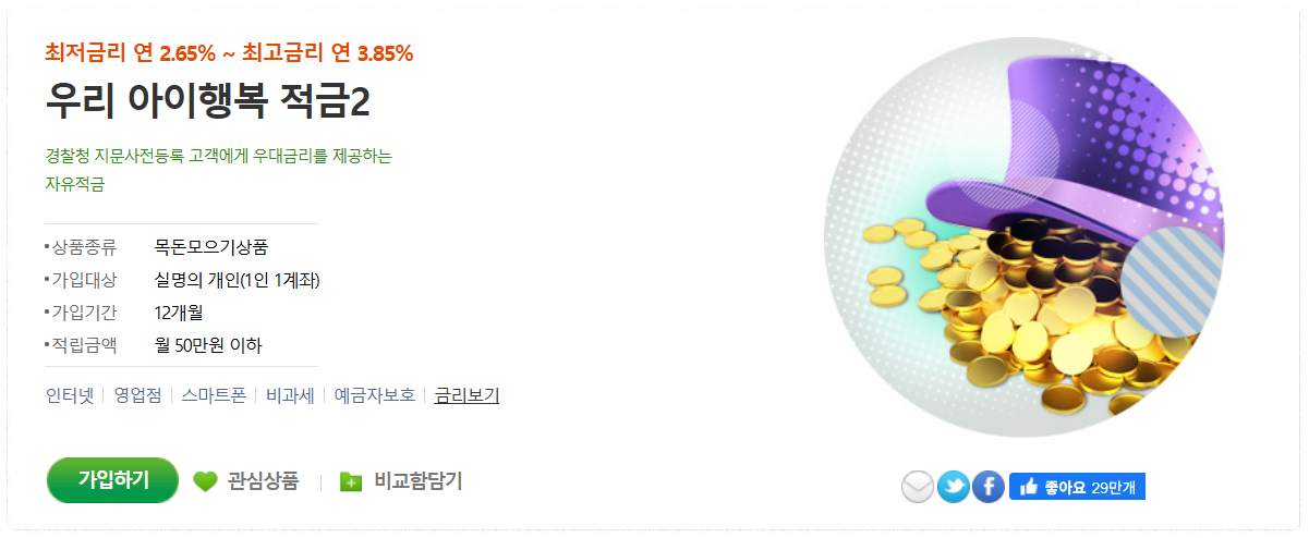 | 우리아이 행복 2 | 2.65% | 3.85% | 50만 원 |