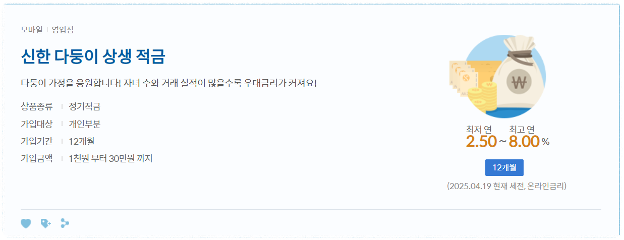 2️⃣ 신한은행 - 신한 다둥이 상생 적금