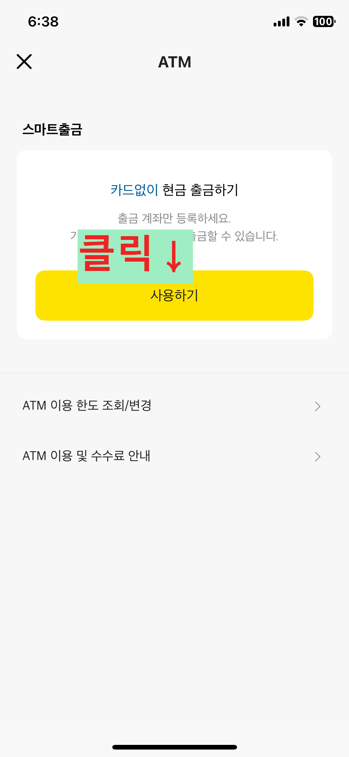 - 카카오뱅크 앱 → ‘ATM 스마트출금’ 메뉴 선택