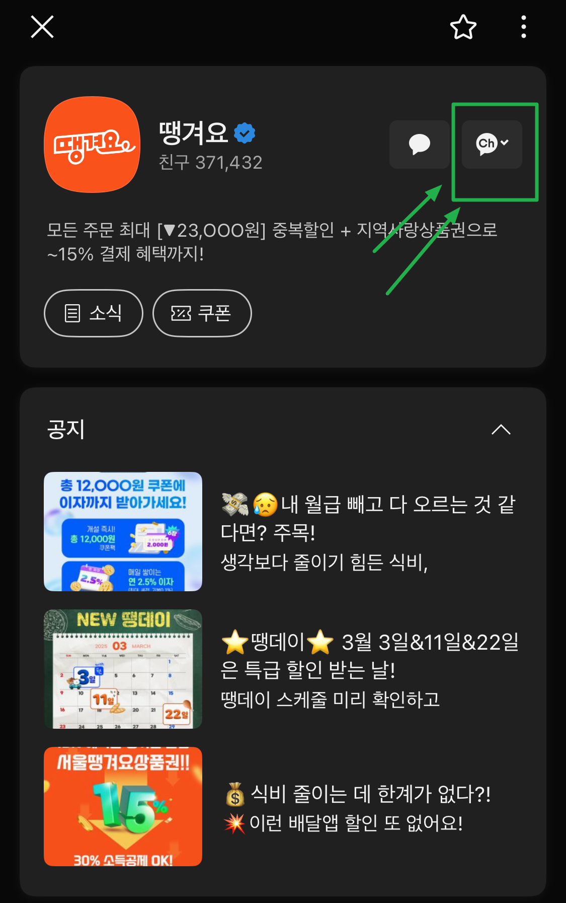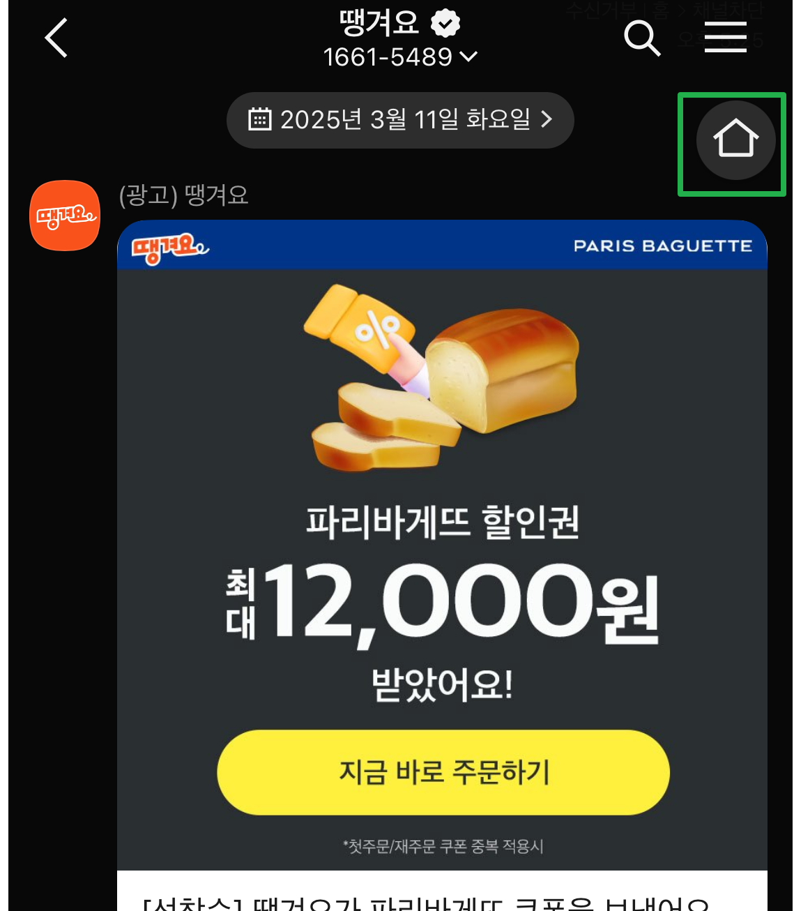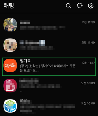 - 카카오톡을 실행하고, 광고 알림톡이 온 채팅방을 엽니다.