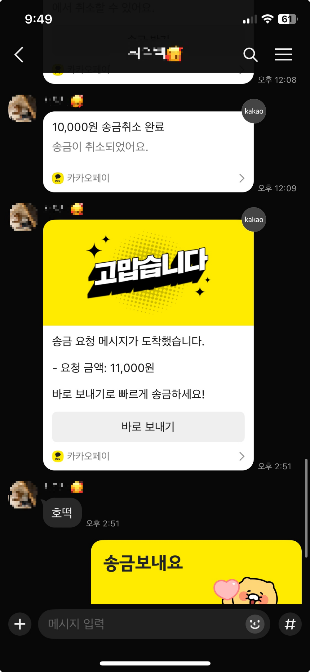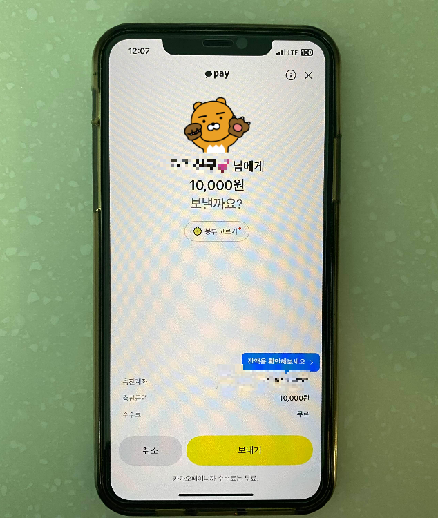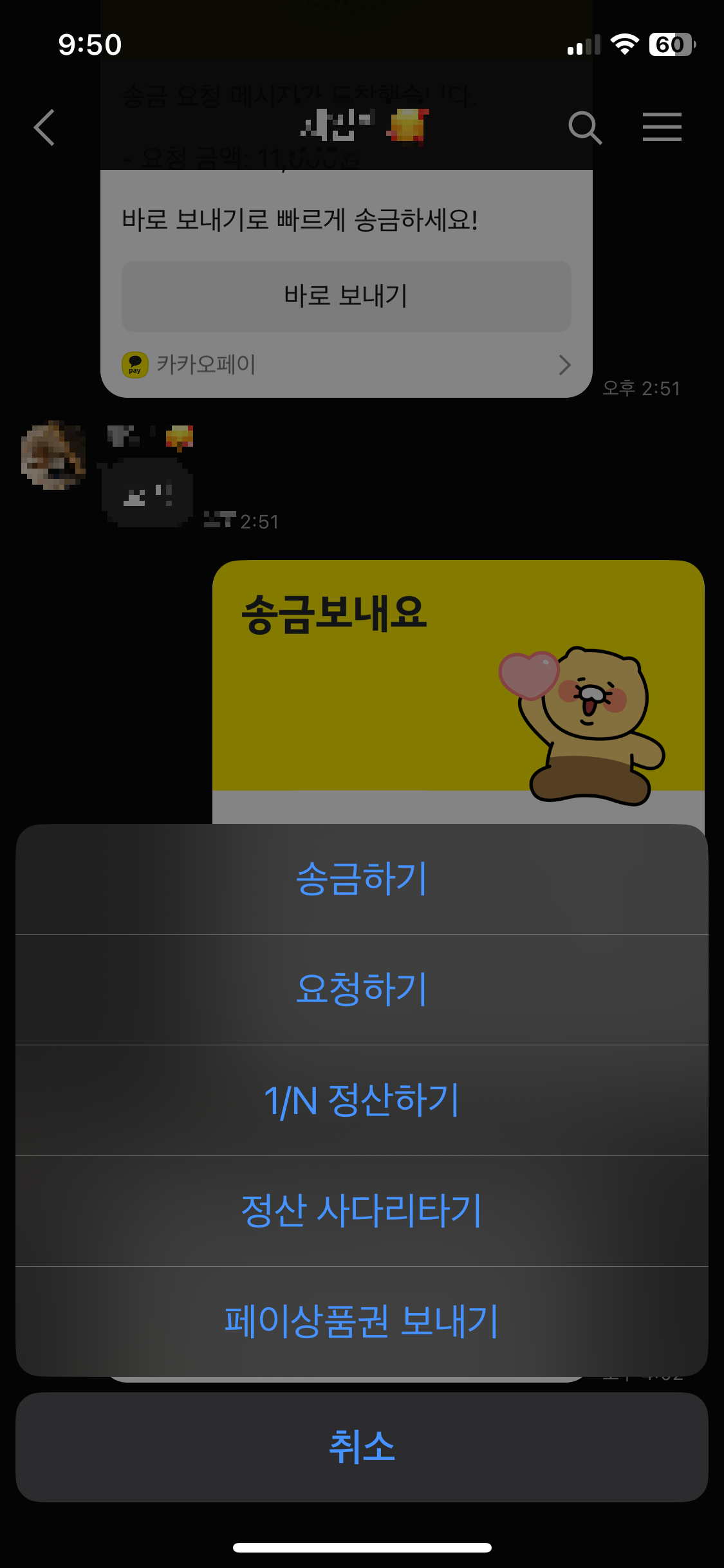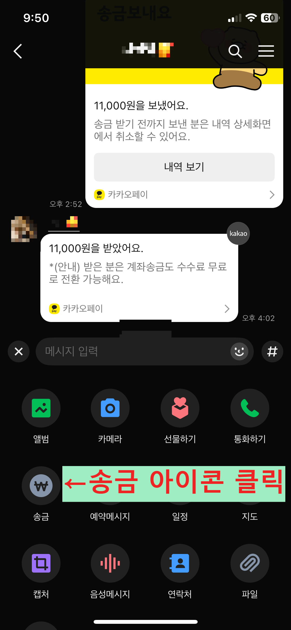 요즘엔 카카오페이 송금 기능을 많이 이용하죠.