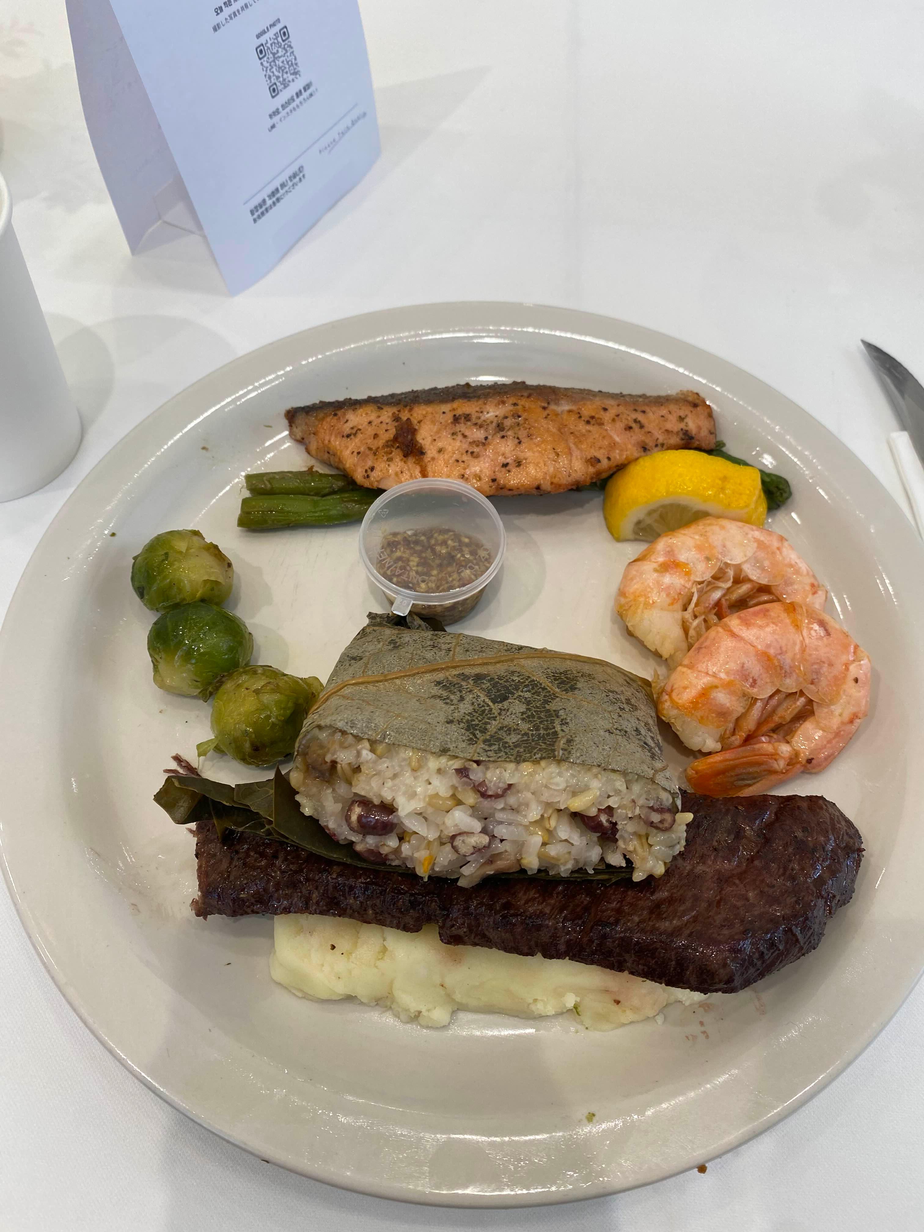1인당 주어지는 스테이크 비프 & 연어, 연잎밥 이었는데요.