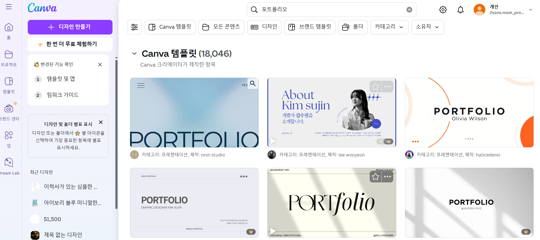 포트폴리오 만들기 좋은 사이트로 Canva 추천