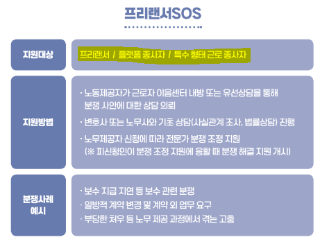| 프리랜서·플랫폼 종사자 특화 | 세무·법률 DAY 운영, 정기 교육, 분쟁조정 |