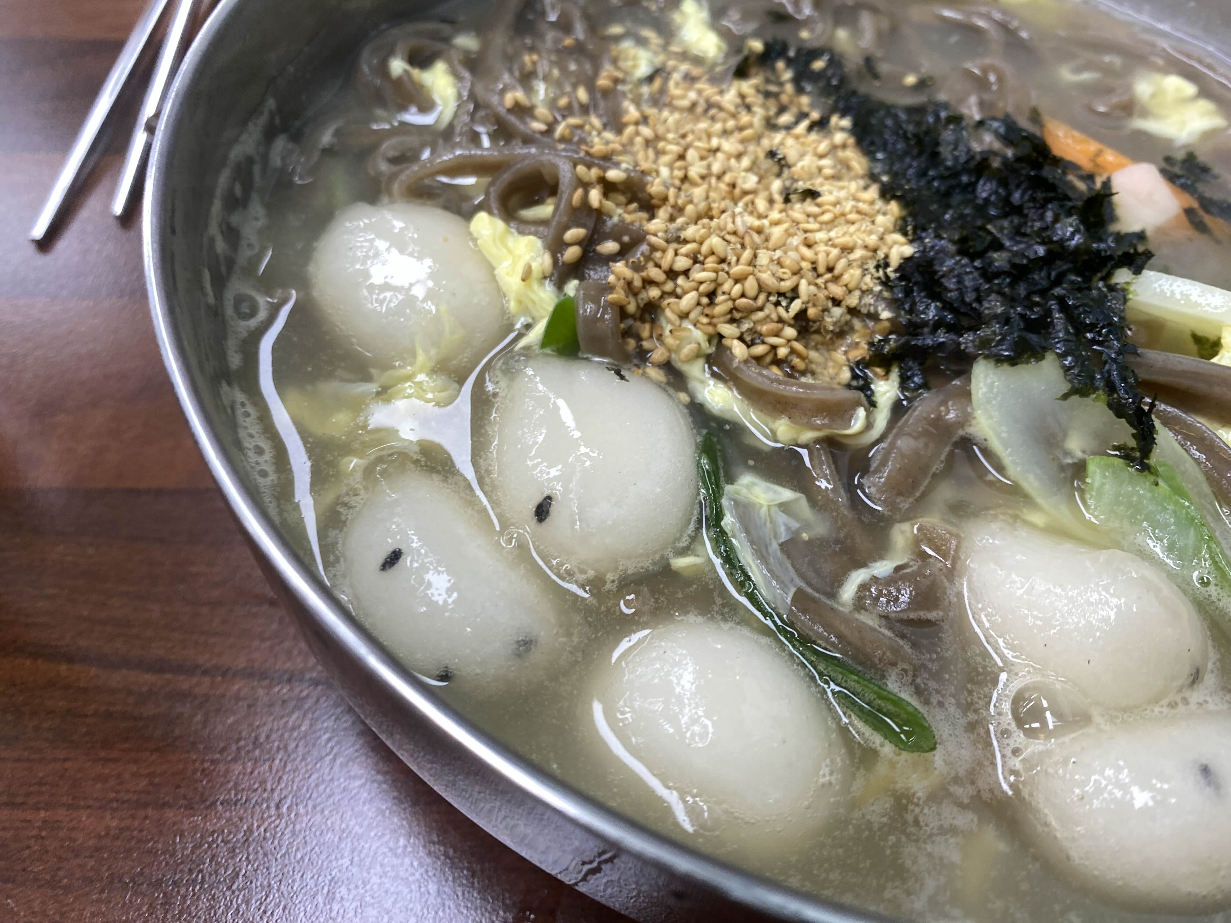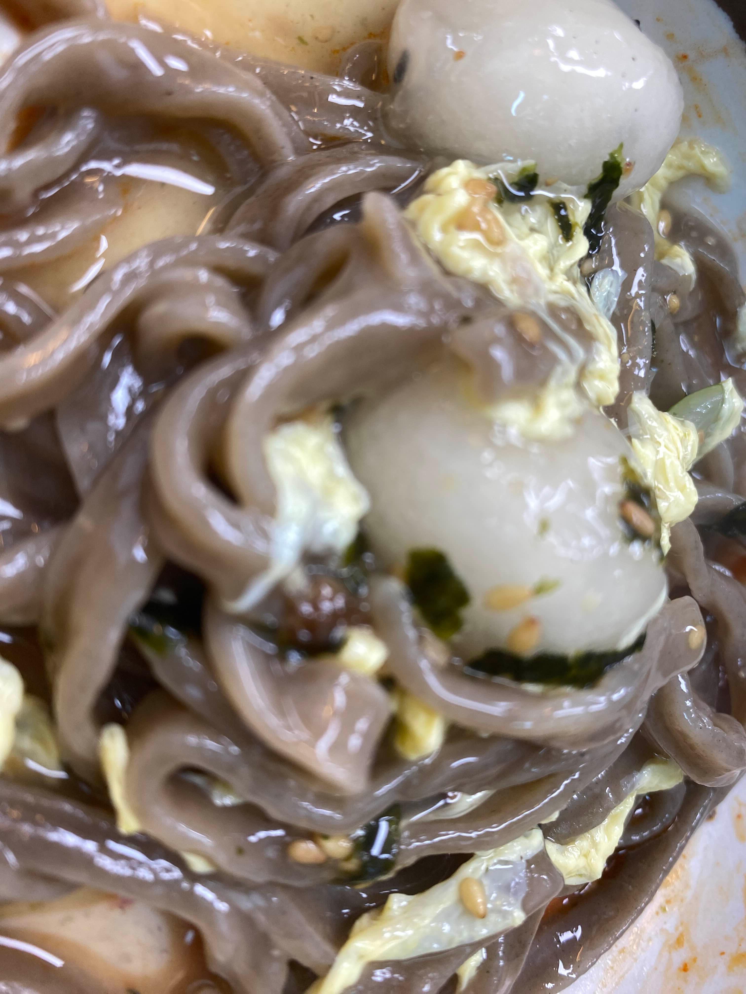 칼국수면이 메밀이들어가서 갈색이고, 중간에 면이 붙어있는게 있었지만, 너무 짜거나 그렇지 않게 맛있었어요.