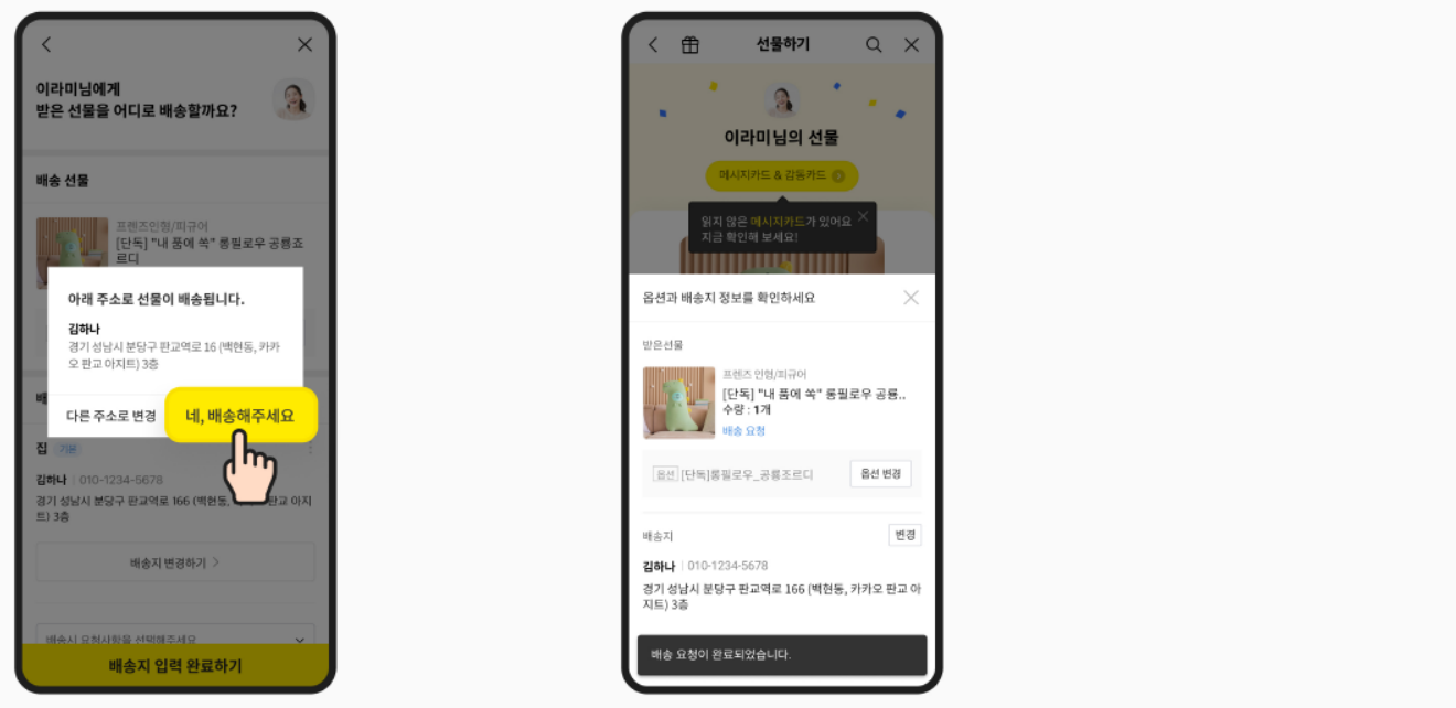 → 선물 받는 사람이 원하는 주소로 받기 위해 꼭 필요한 과정이에요.