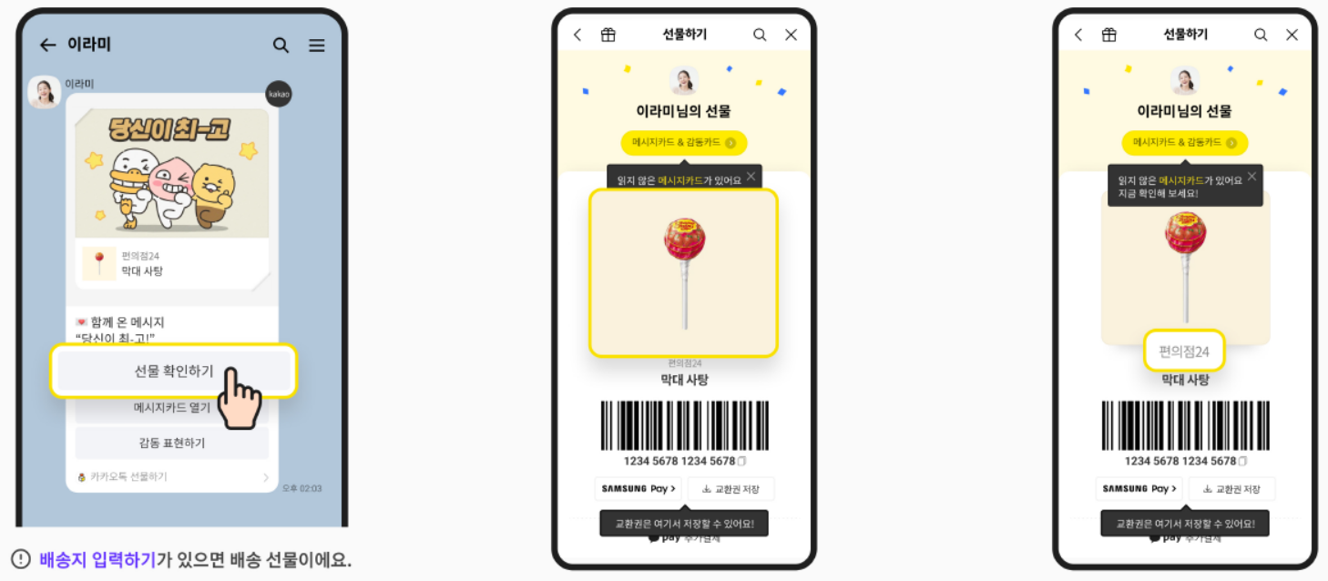 카카오톡으로 선물을 받았을 때 배송 선물 받는 법, 교환권(기프티콘) 사용하는 방법,
