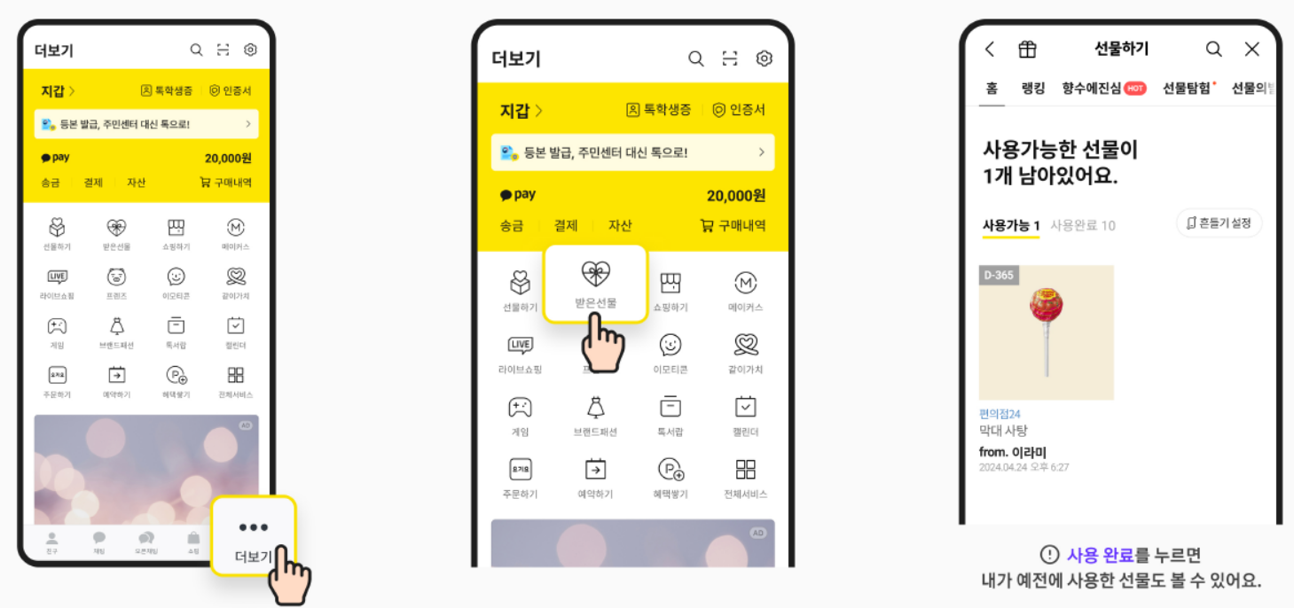 - [받은 선물함] 메뉴로 이동