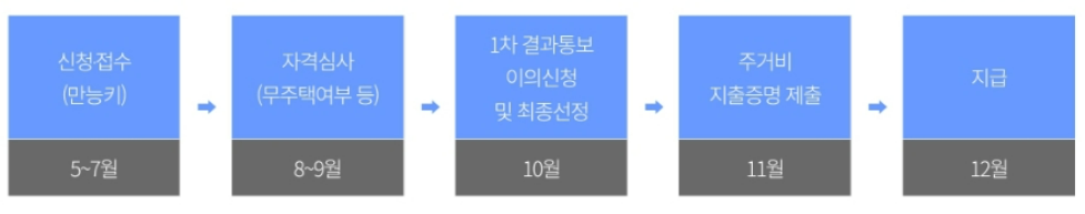 - 예) 월세 20만 원이면 주거비 지원금 20만 원 지급