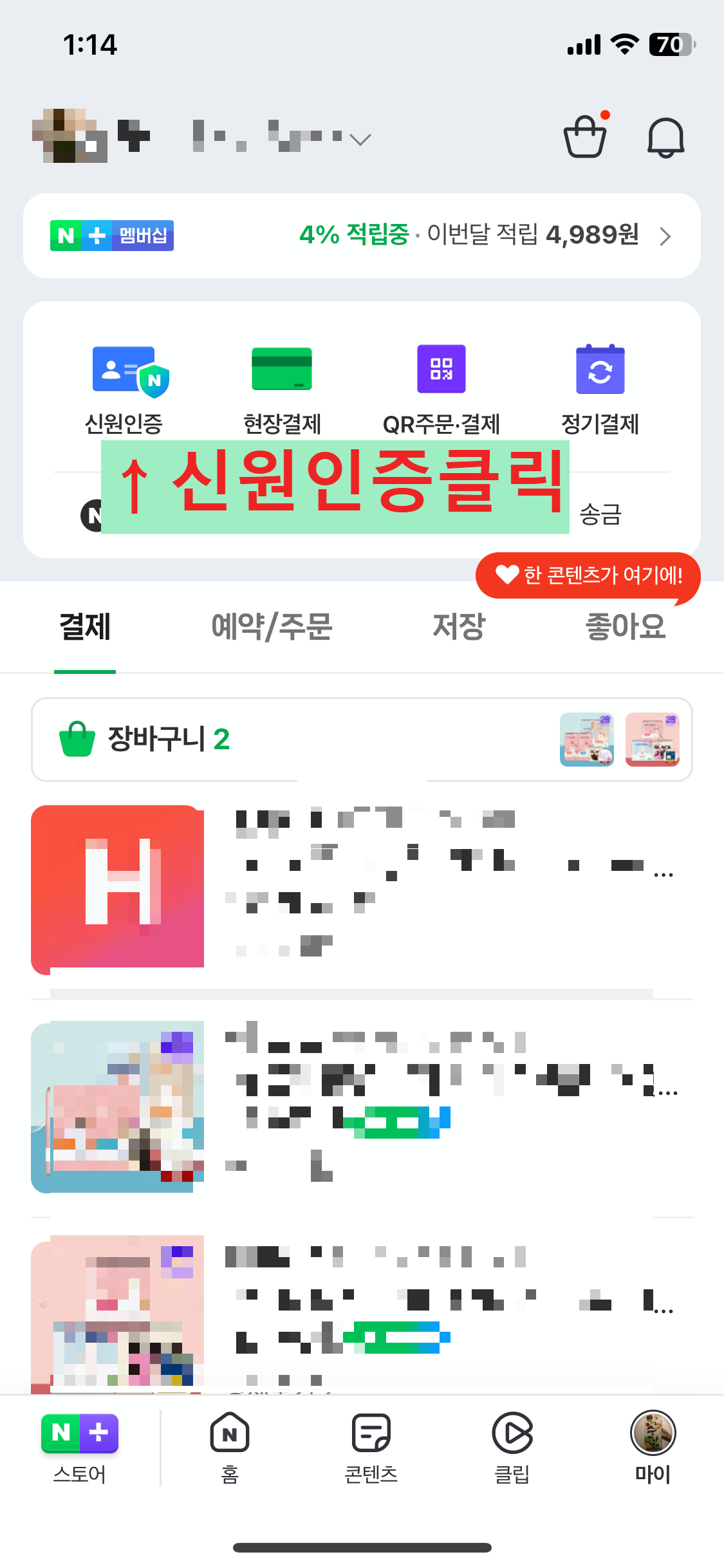 - 네이버 앱 실행 → 우측 하단 프로필 아이콘 클릭