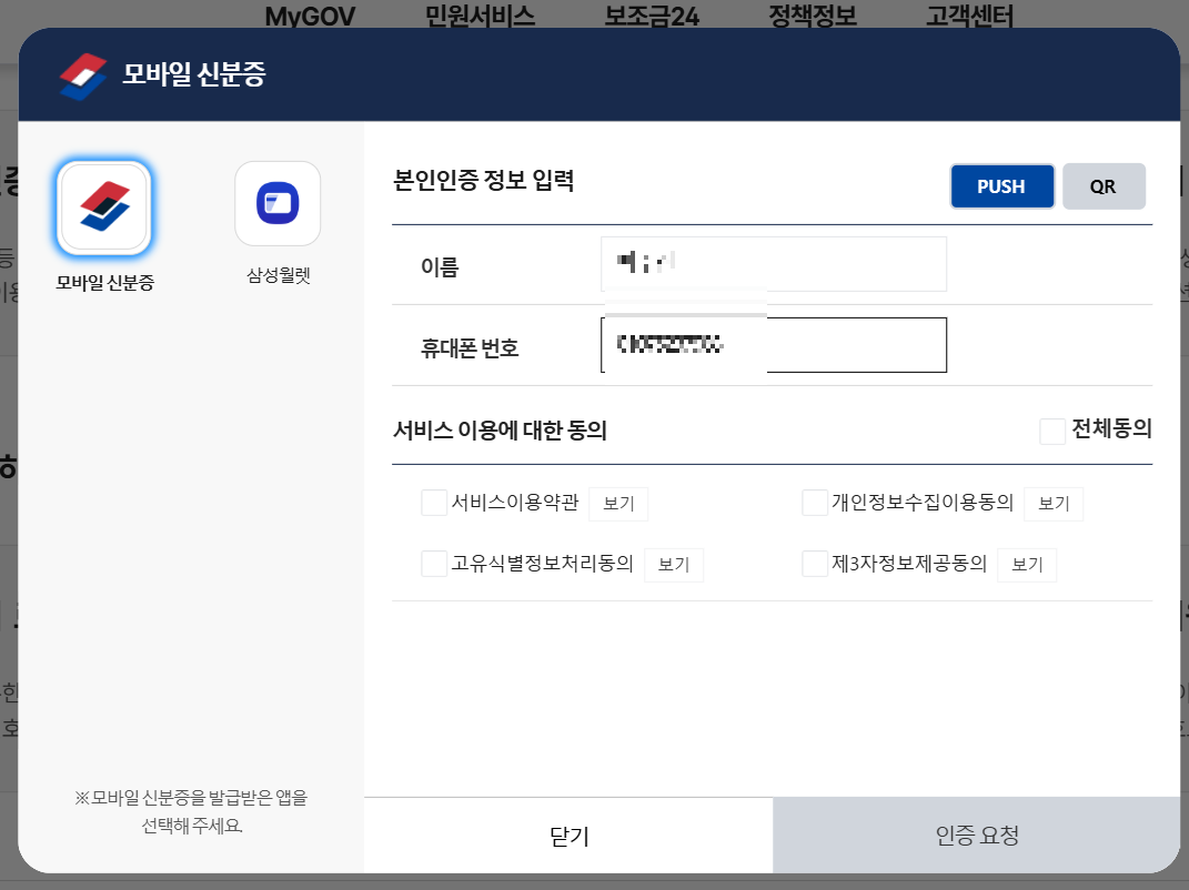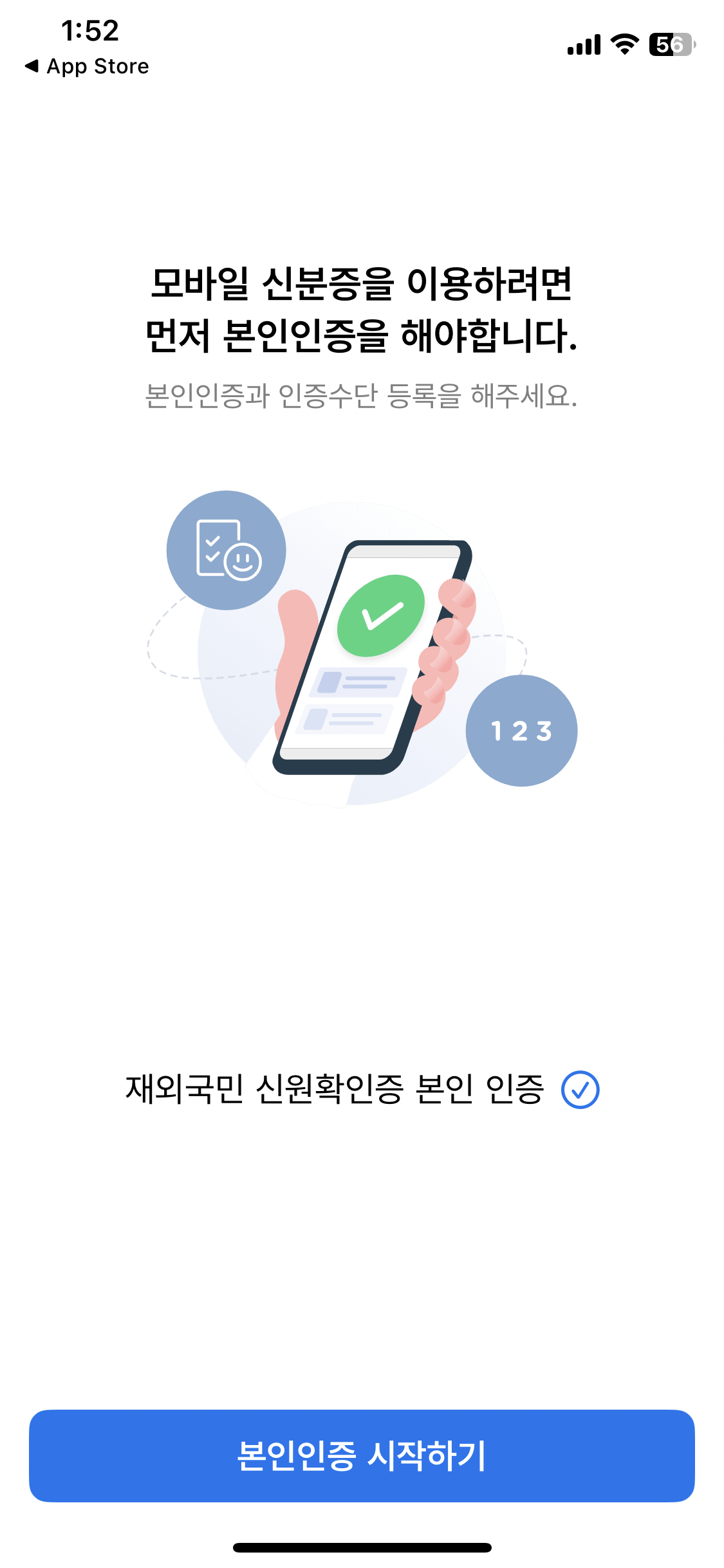 핸드폰으로 '모바일 신분증' 앱을 다운 받아서 진행