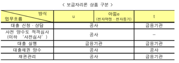 - 상품 종류: u-보금자리론, 아낌e-보금자리론, t-보금자리론