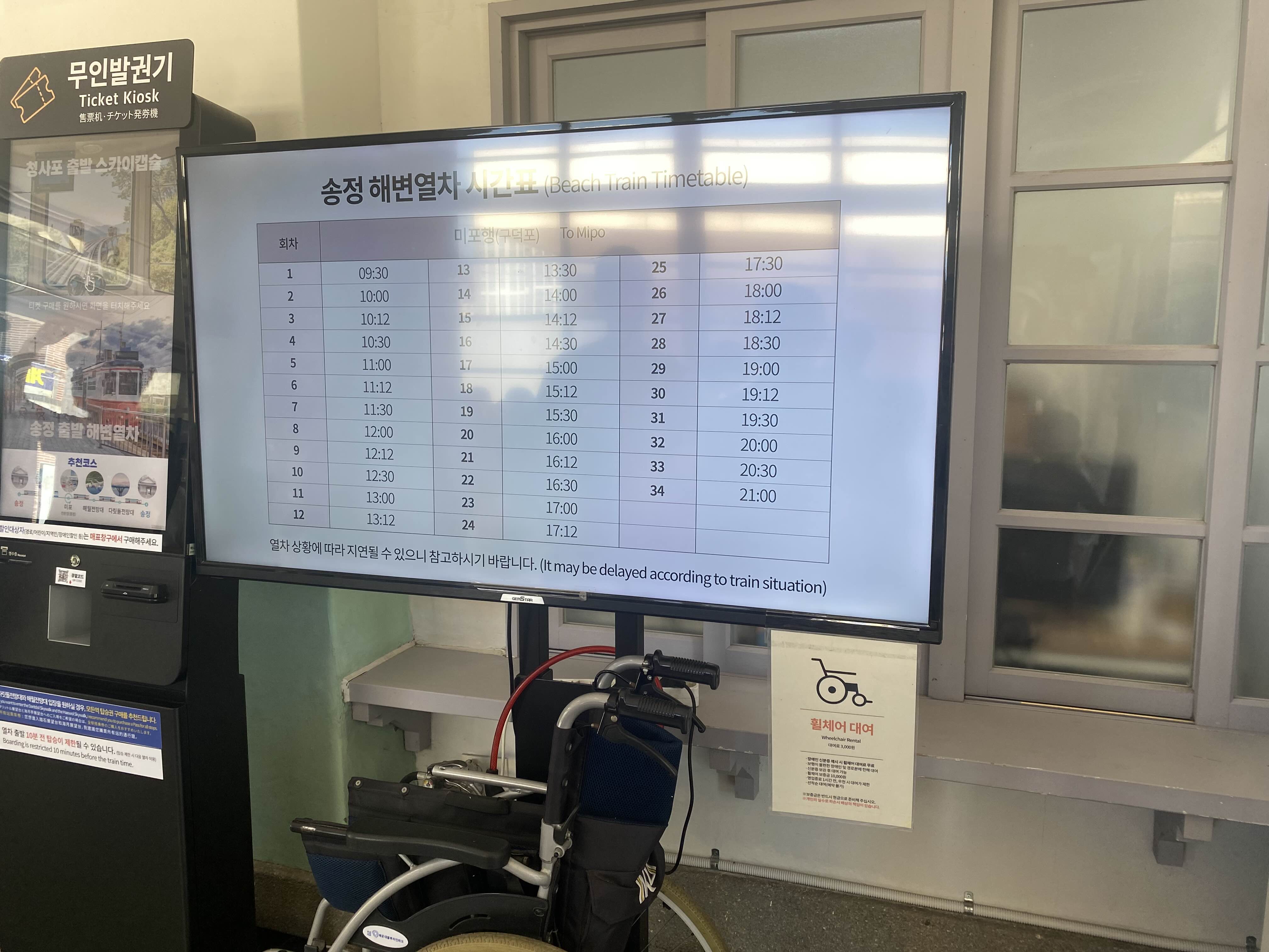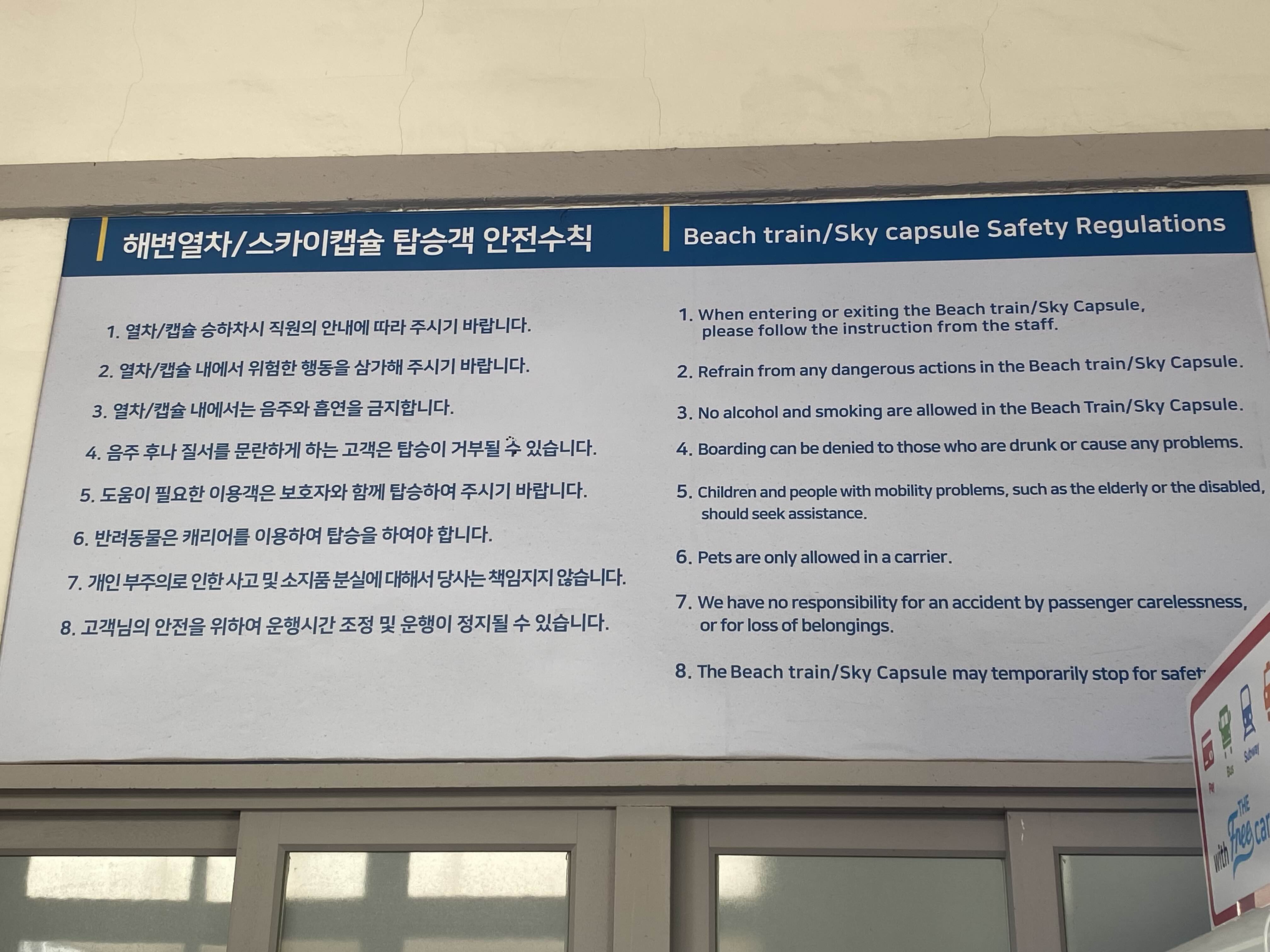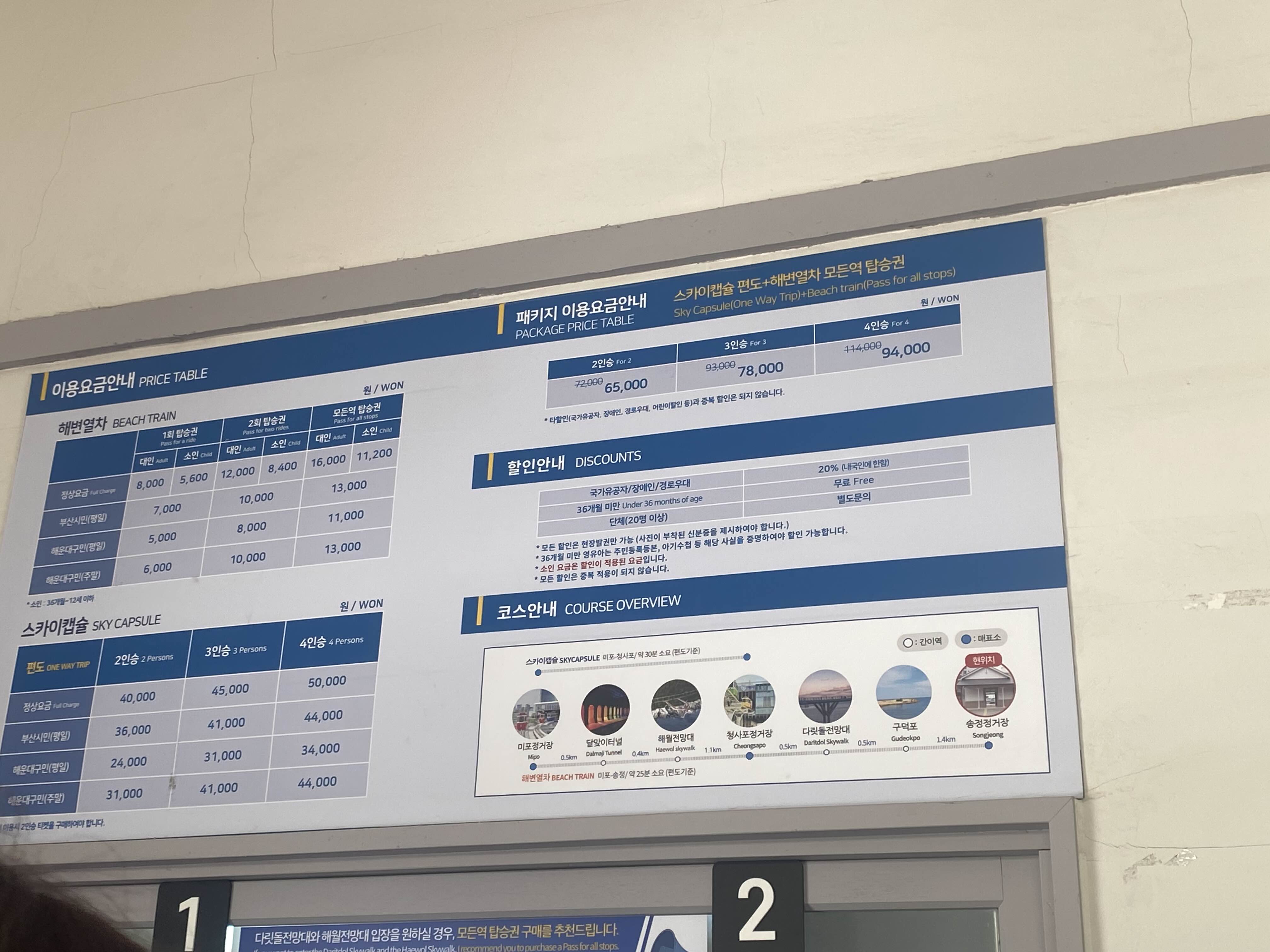 해변열차나 스카이캡슐 두가지가 있는데요. 스카이캡슐은 이미 다 표가 판매되어