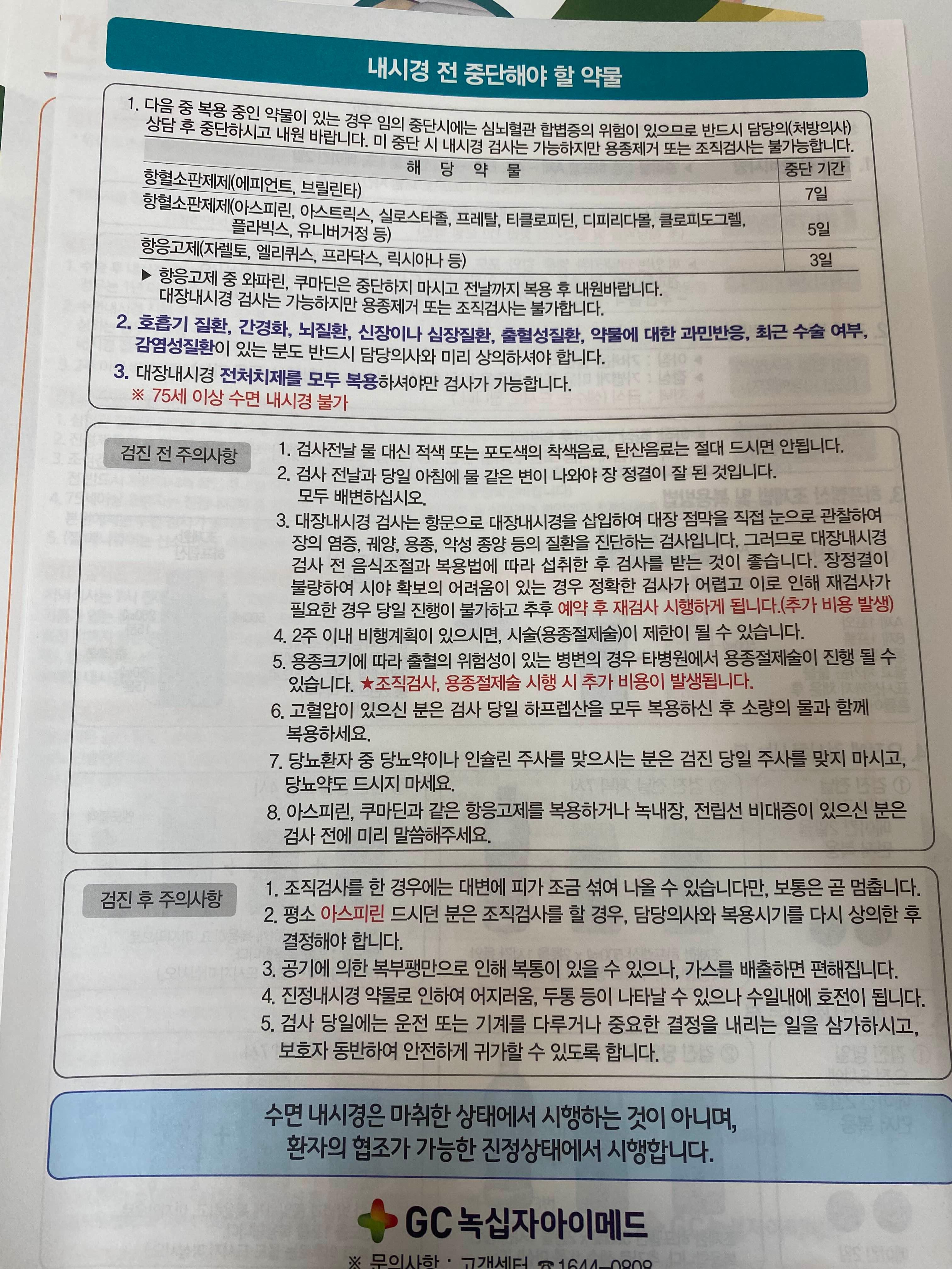 - 검사 당일: 금식 필수 (물은 소량 가능)