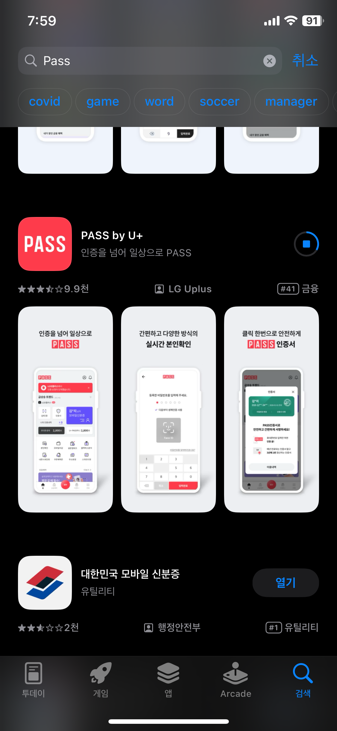 - PASS 앱 실행